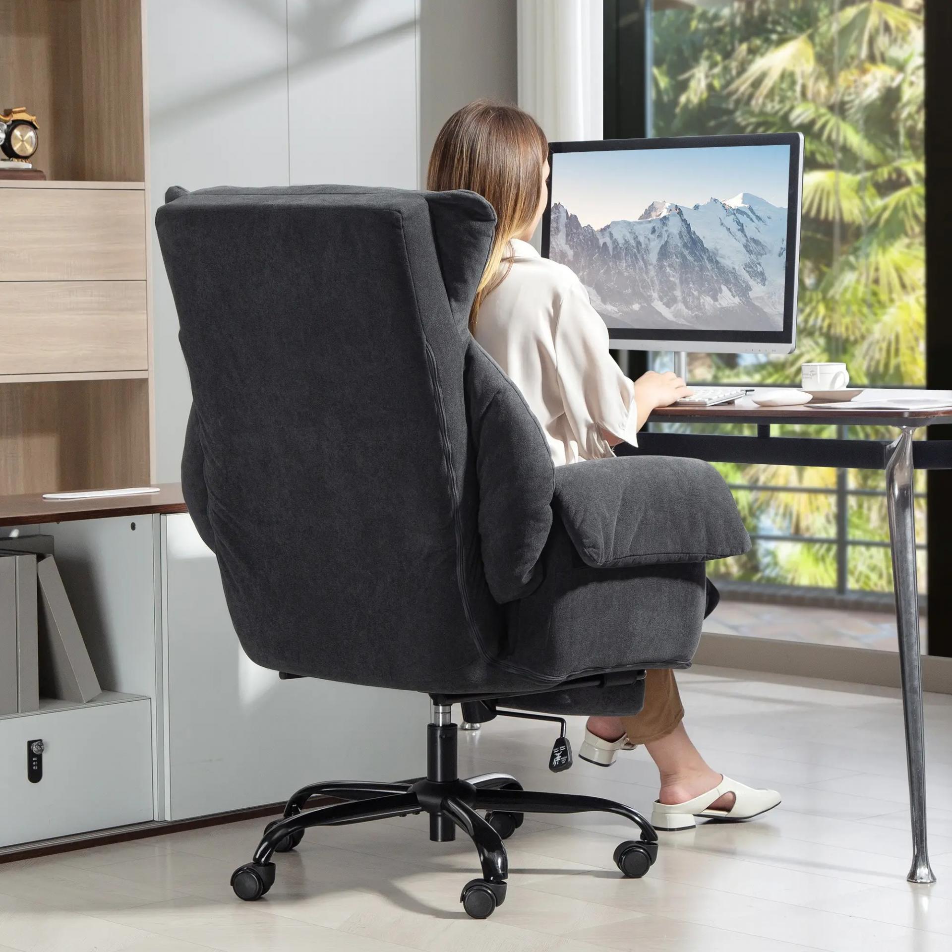Silla de Escritorio con Reposapiés Respaldo Reclinable y Alto Asiento y Reposabrazos Anchos Acolchado Grueso Gris Oscuro