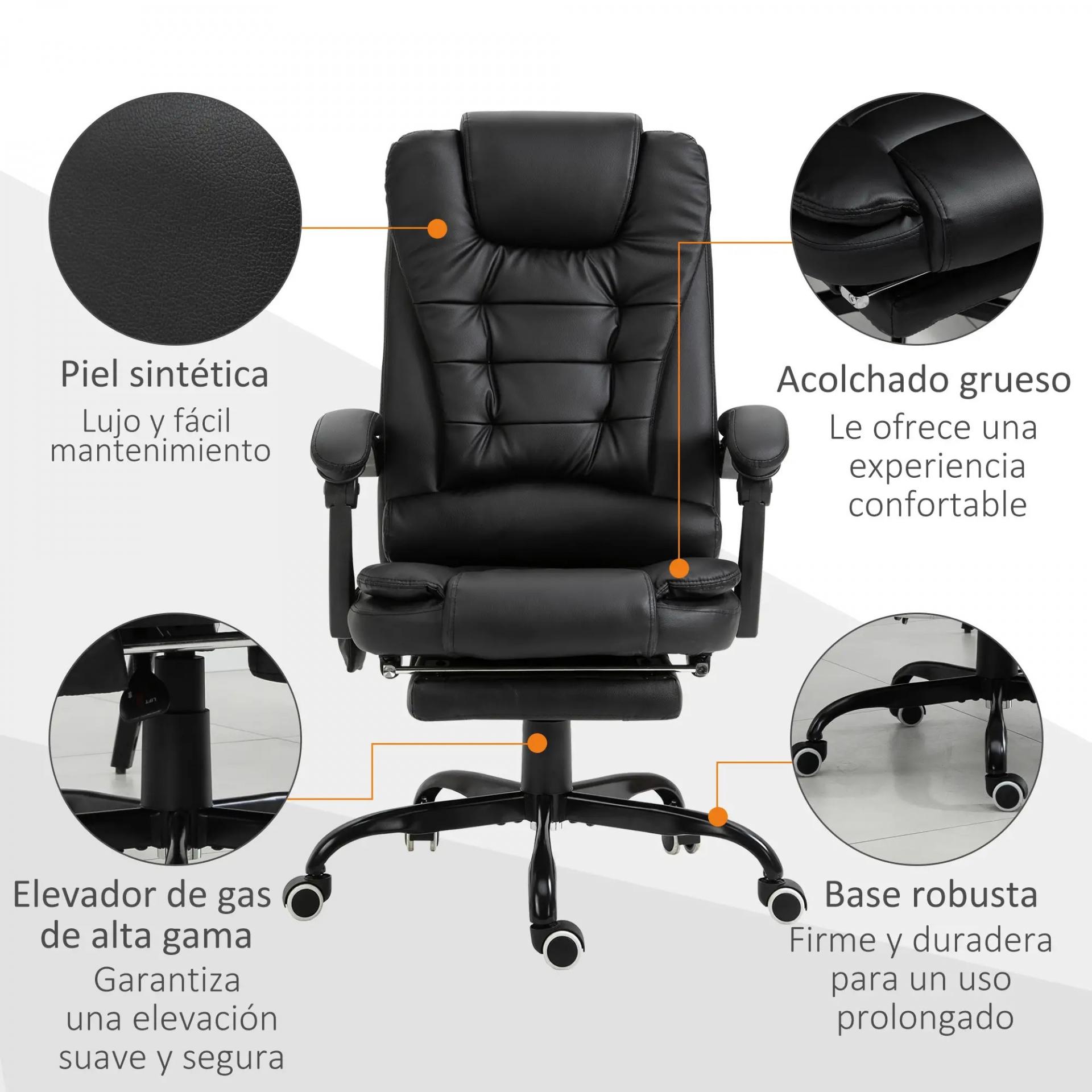 Silla de Oficina con 7 Puntos de Masaje con Reposapiés Retráctil Altura Ajustable Control Remoto y Tejido de PU Negro