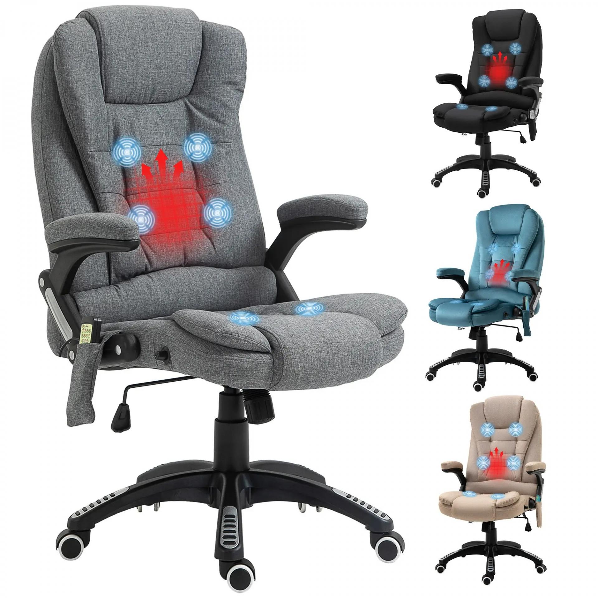 Silla de Masaje con 6 Puntos de Masaje con Función de Calefacción Altura Ajustable y Ruedas 68x72x110-120 cm Gris