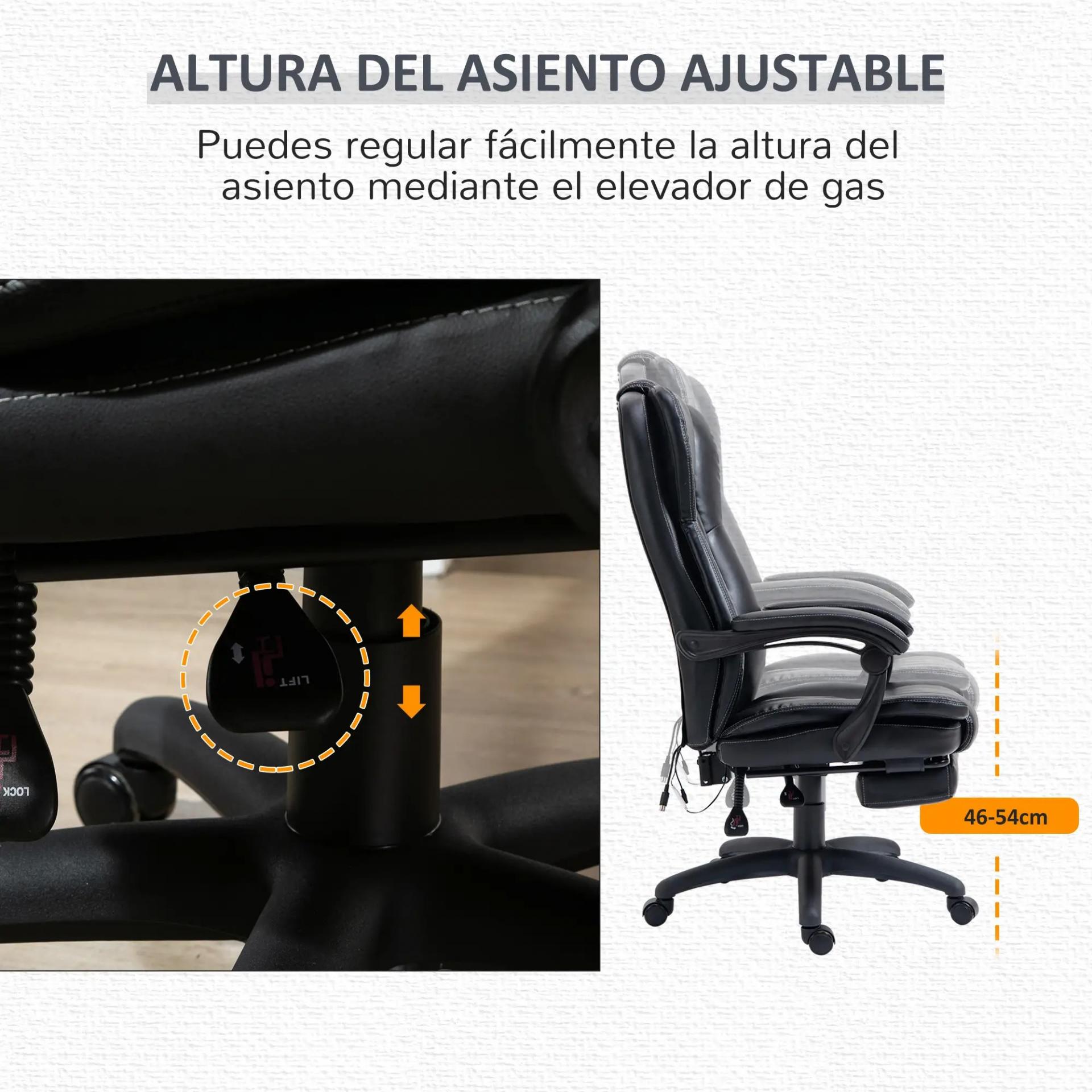 - AJUSTABLE Y RECLINABLE: La altura del asiento se regula con elevador de gas TÜV, seguro y estable. El respaldo de la silla de oficina masaje se reclina hasta 135° y cuenta con reposapiés retráctil, permitiéndote inclinarte y relajarte cómodamente