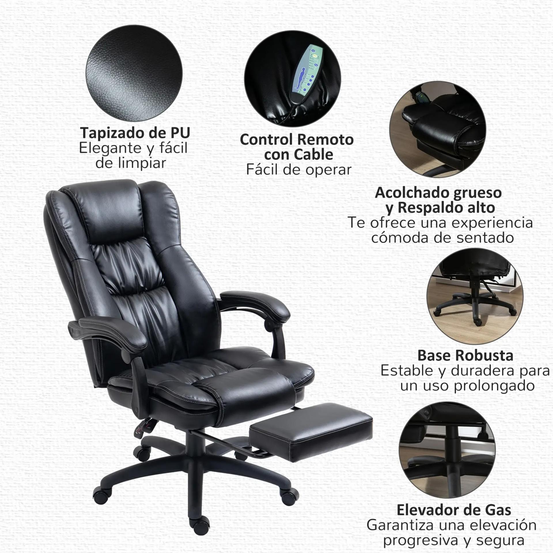 Silla de Masaje Reclinable con Altura Ajustable Reposapiés Retráctil y Control Remoto 68,5x68,5x113-121 cm Negro