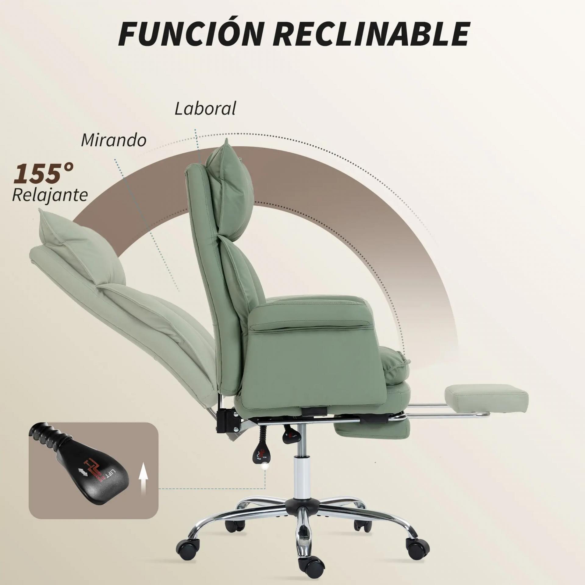 Silla de Escritorio con Reposapiés Respaldo Reclinable Alto Acolchado Grueso Tapizada en Cuero Sintético Ruedas Verde