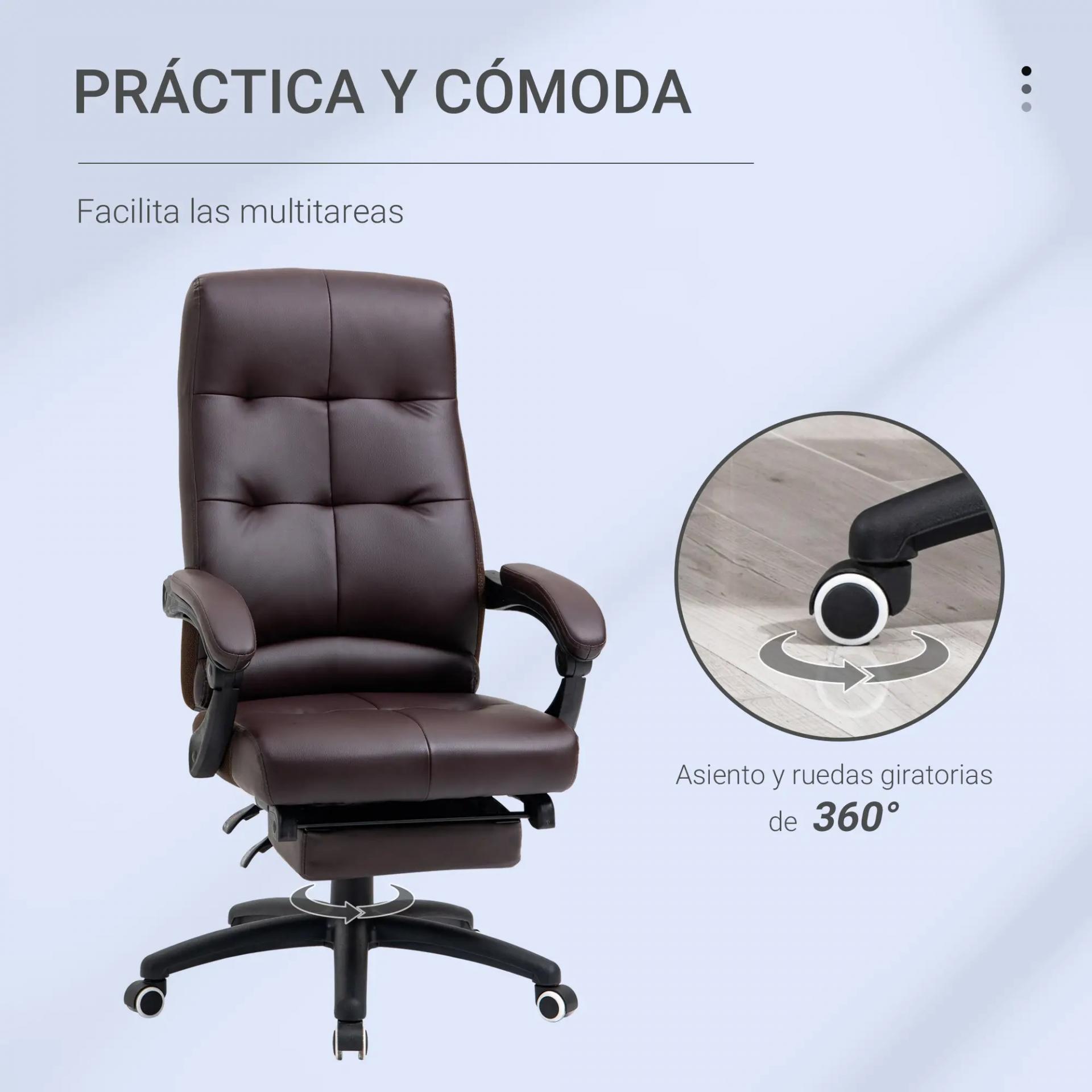 Silla de Oficina Giratoria Silla de Escritorio Reclinable Silla de Estudio Tapizada de PU con Altura Ajustable Reposabrazos Reposapiés 65x65x118-125 cm Marrón