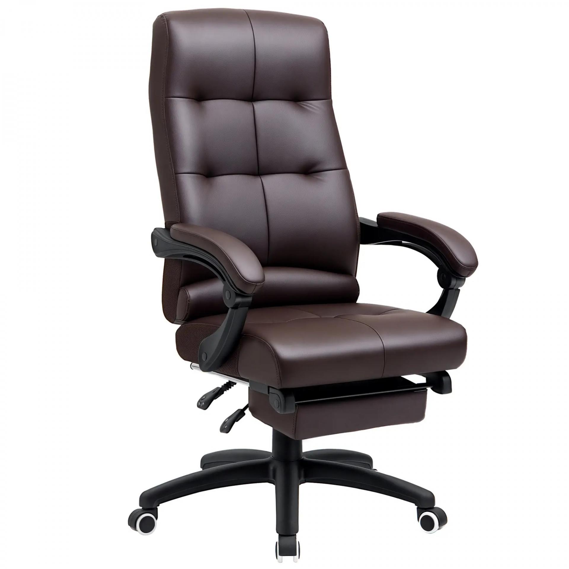 DISEÑO CÓMODO: Esta silla de oficina con reposapiés cuenta con un respaldo cómodo y un asiento acolchado con espuma de alta densidad. Tapizada en piel sintética proporciona una comodidad excepcional al sentarse