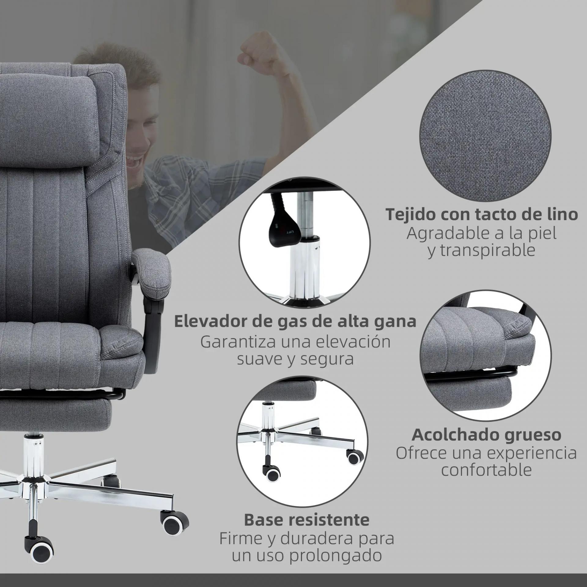 - RECLINABLE Y CON REPOSAPIÉS RETRÁCTIL: Reclina el respaldo hasta 135° para relajarte y aliviar la presión lumbar. Sube los pies con el reposapiés extensible y disfruta de una postura más cómoda