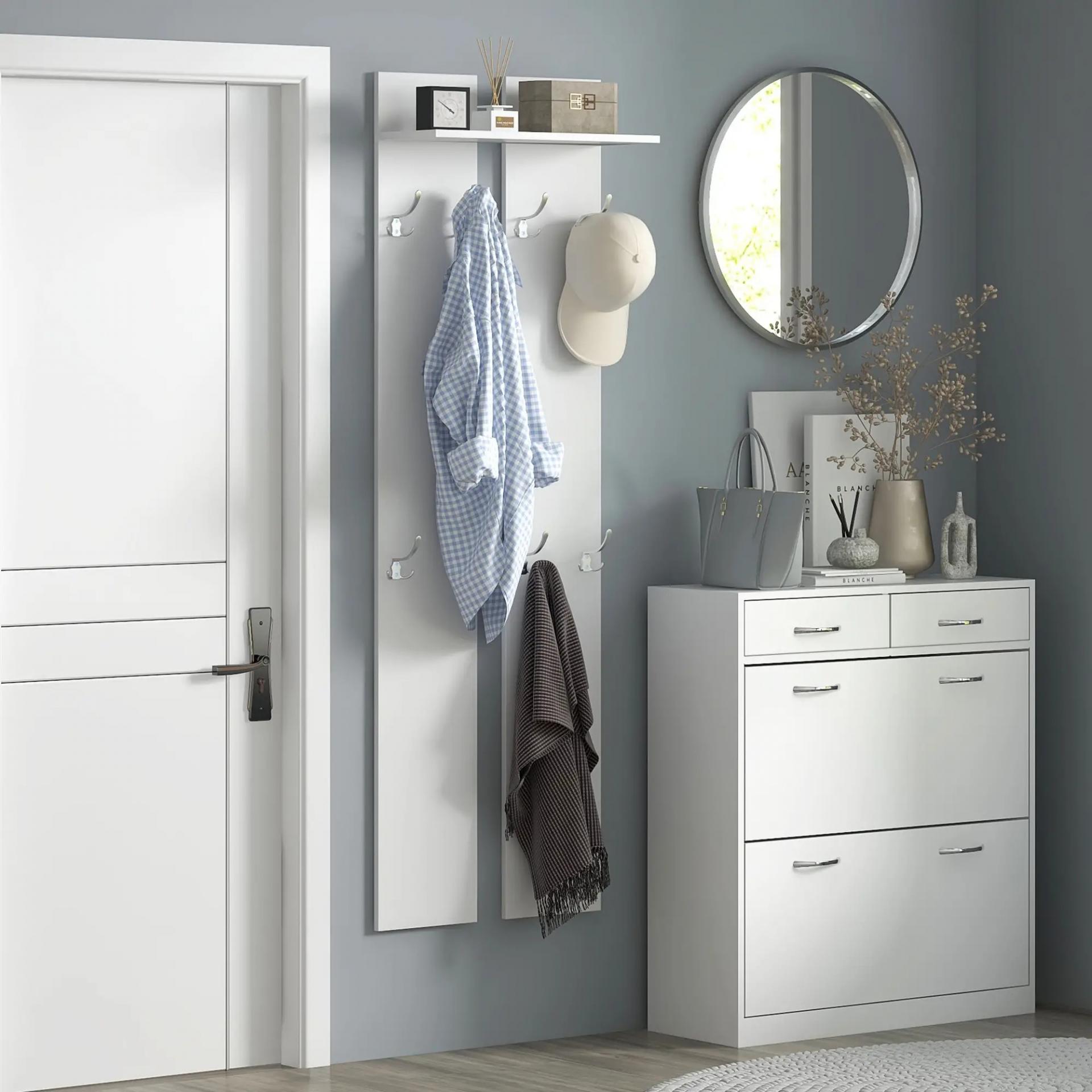 - DISEÑO ELEGANTE: Con un diseño sencillo y acabado en blanco, este perchero para recibidor complementará perfectamente cualquier estilo de decoración, añadiendo un toque de elegancia dondequiera que lo coloques