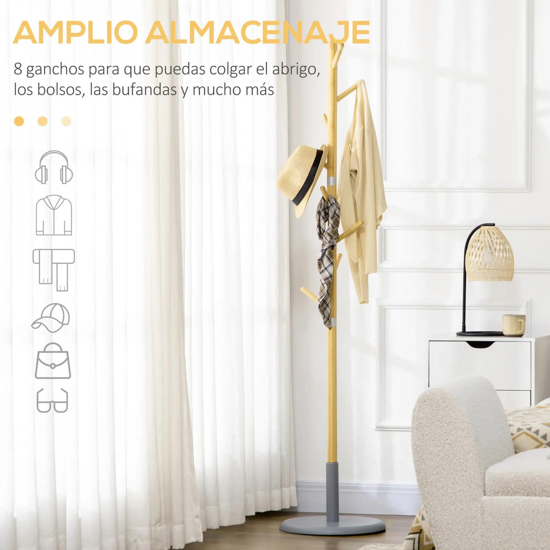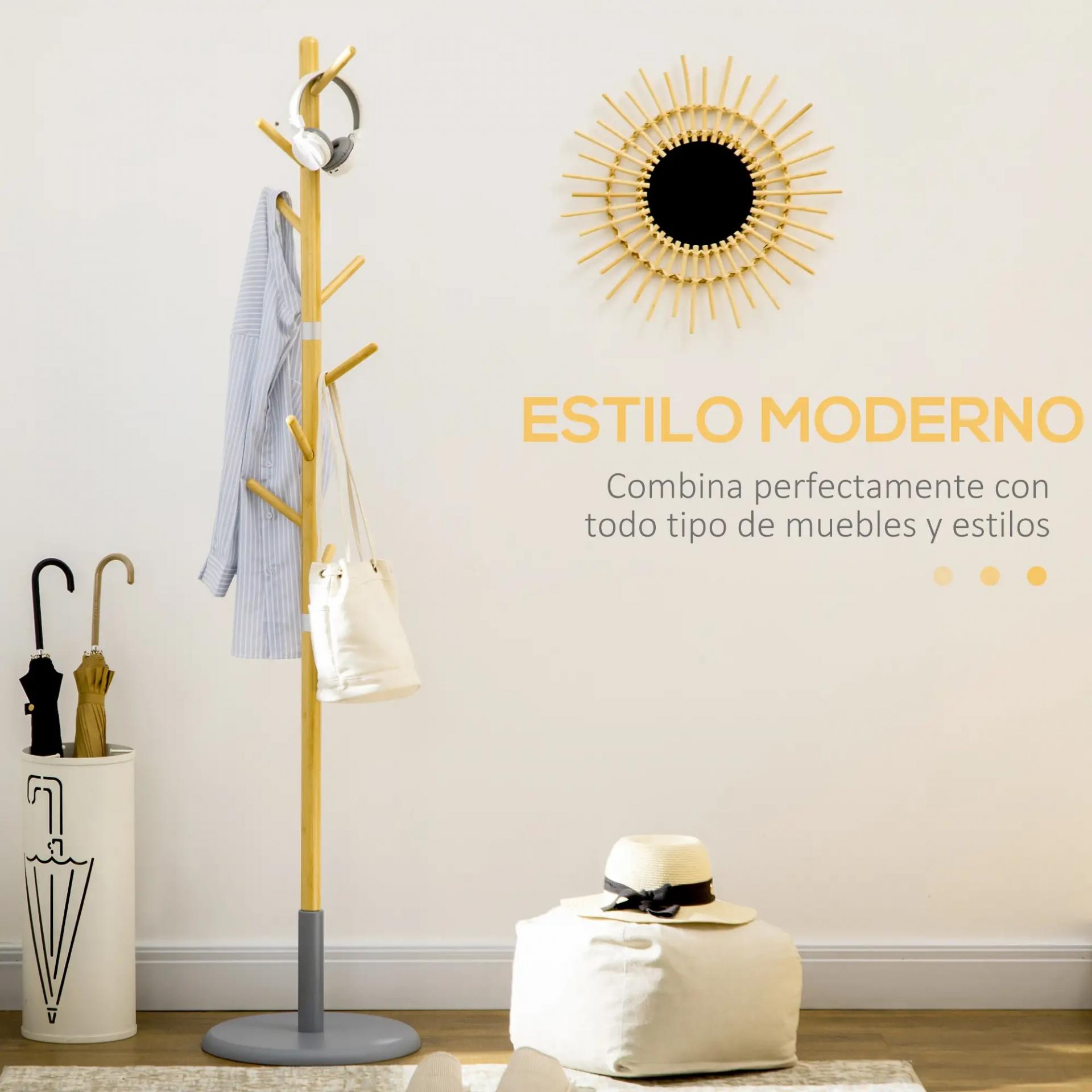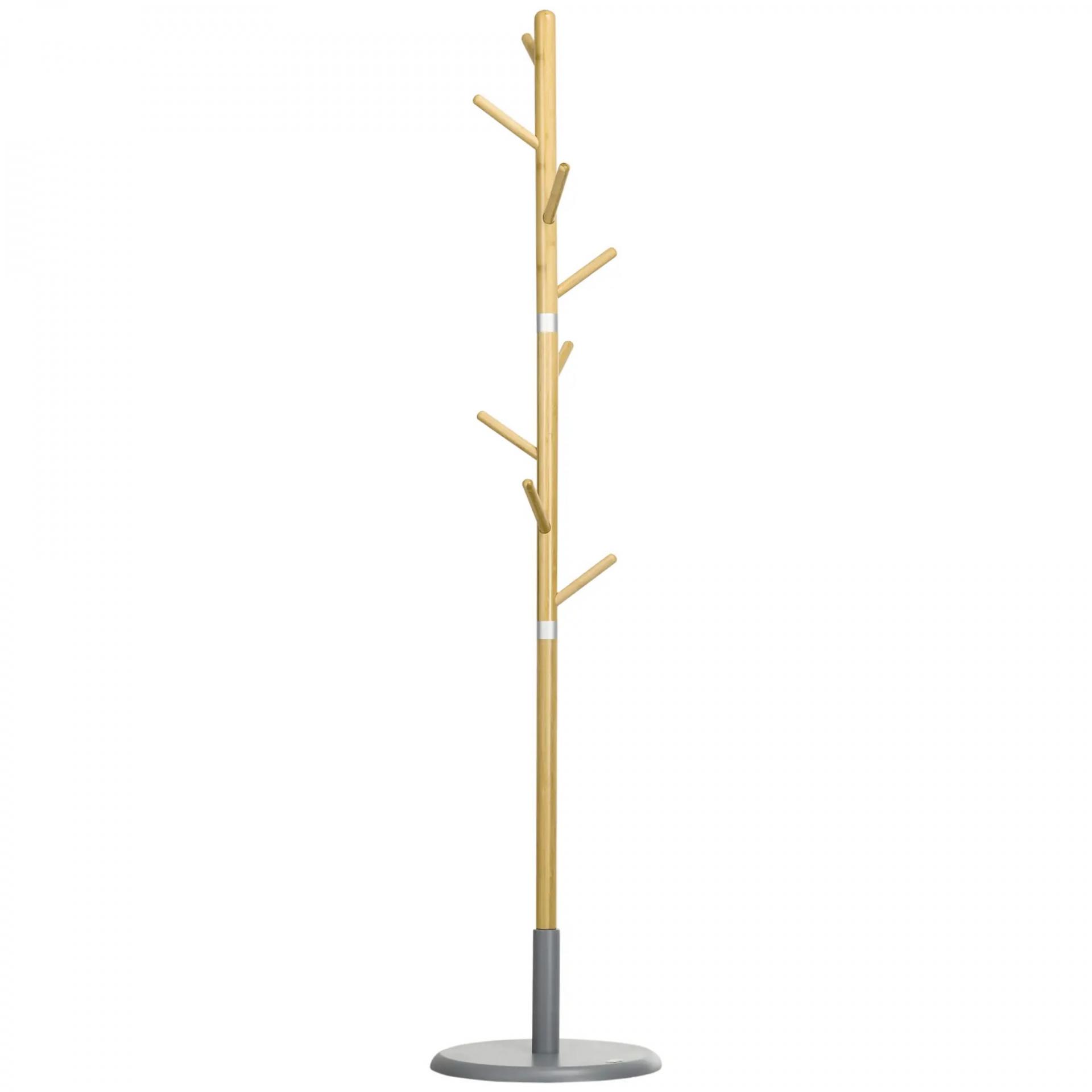 Perchero de Entrada Recibidor con 8 Ganchos para Colgar Ropas Bolsas en Forma de Árbol Ø37,8x175,6 cm Natural y Gris