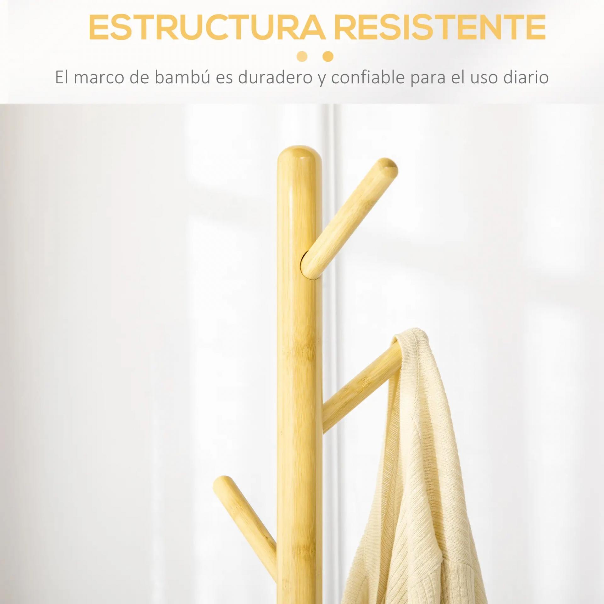 - ESTRUCTURA RESISTENTE: Perchero de pie para ropa con marco resistente de madera de bambú y base circular amplia de MDF para garantizar un soporte con gran resistencia y estabilidad