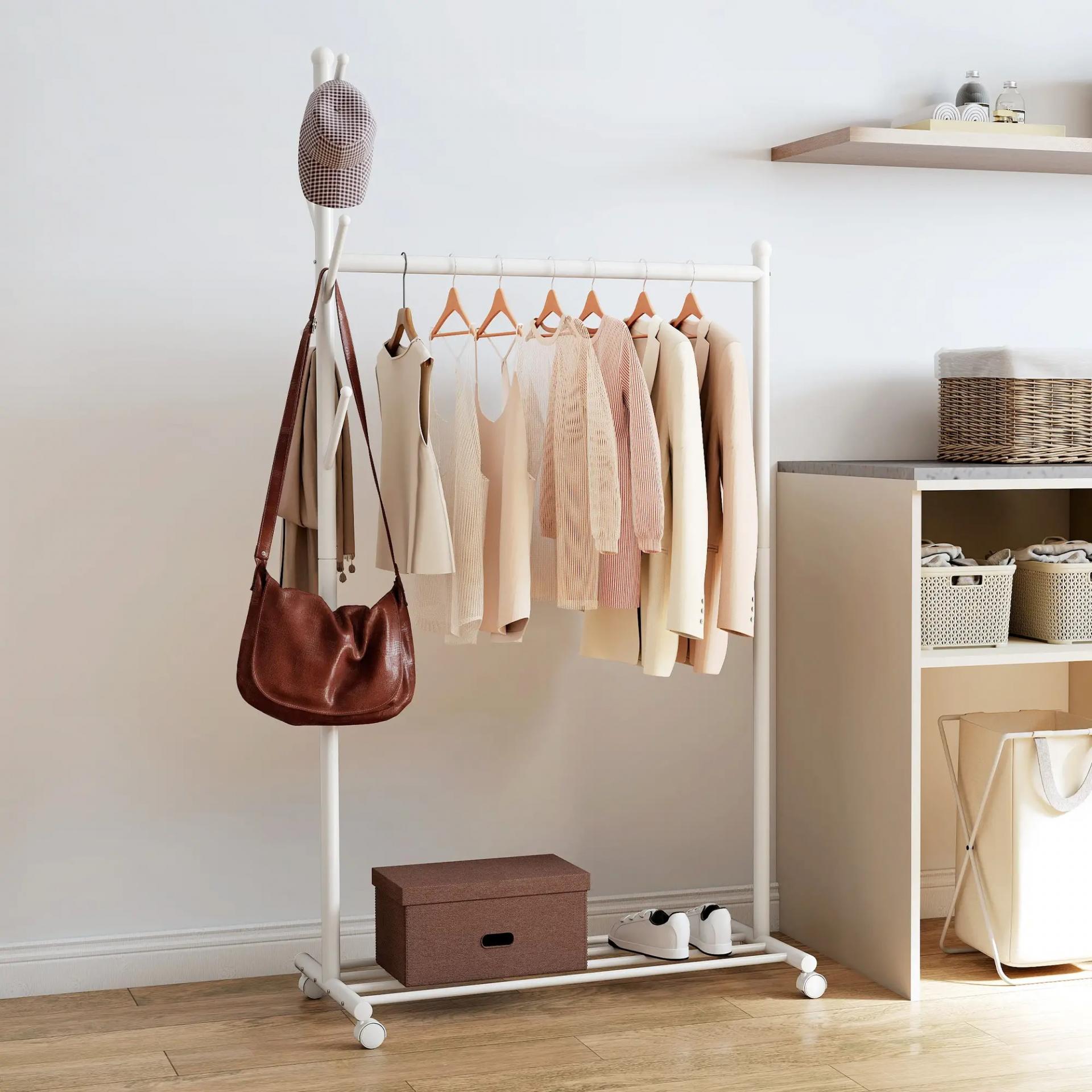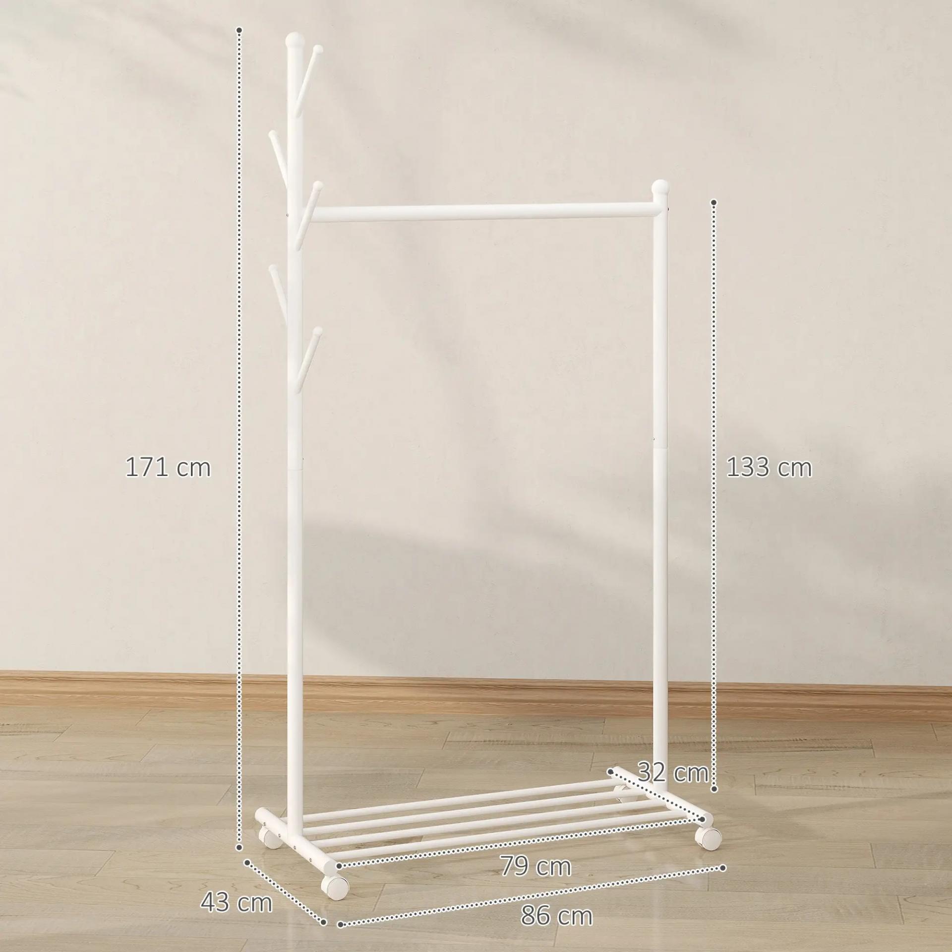 Burro para Ropa con Ruedas 5 Ganchos Barra para Colgar y Balda Inferior para Recibidor Entrada 86x43x171 cm Blanco