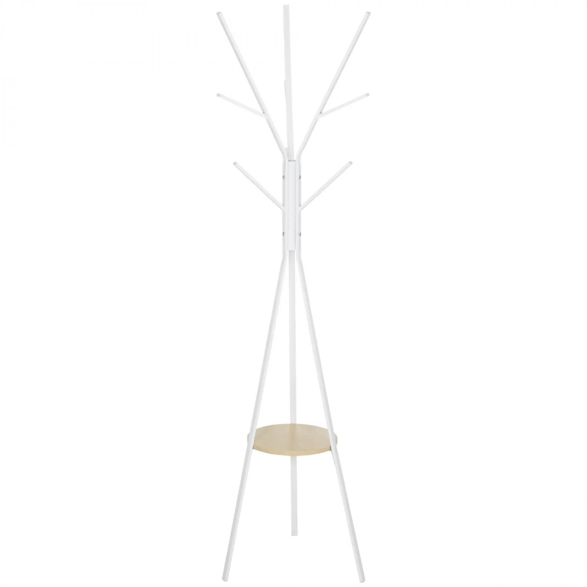 Perchero de Pie Forma de Árbol Perchero para Ropa de Metal con 9 Ganchos y Estante Perchero Vintage 45x45x180 cm Blanco