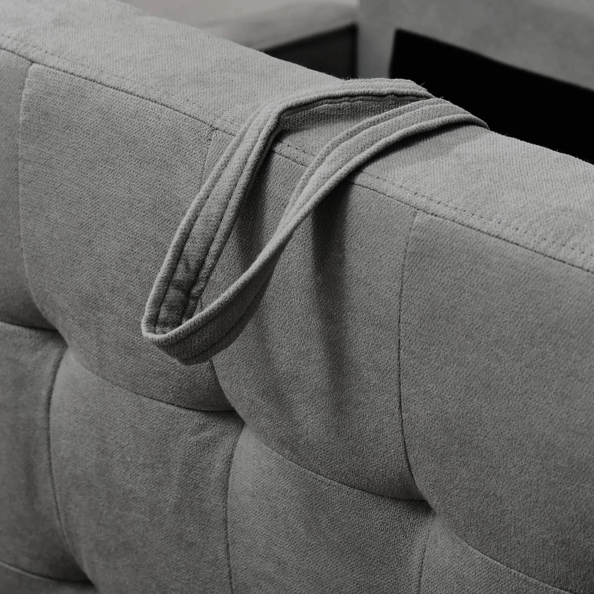 - CÓMODO Y ELEGANTE: El sofá, acolchado y tapizado en agradable tela transpirable, ofrece una comodidad excepcional. El respaldo está compuesto por tres almohadones con mechones de botones que denotan estilo y elegancia