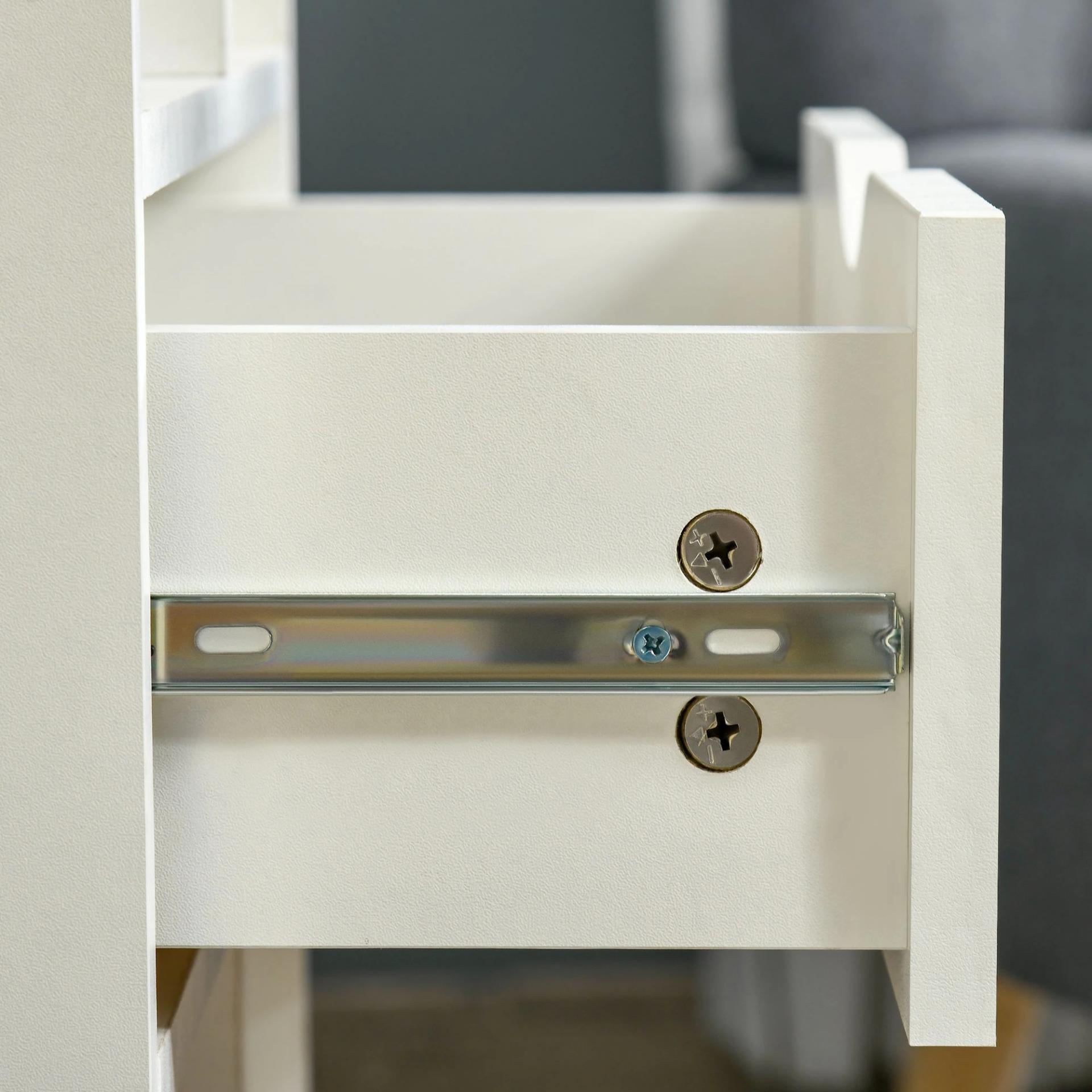 - MEDIDAS TOTALES: 50x29,5x120 cm (LxANxAL). Peso máximo soportado: 50 kg (total), 5 kg (cada compartimento y cajón). Se requiere montaje