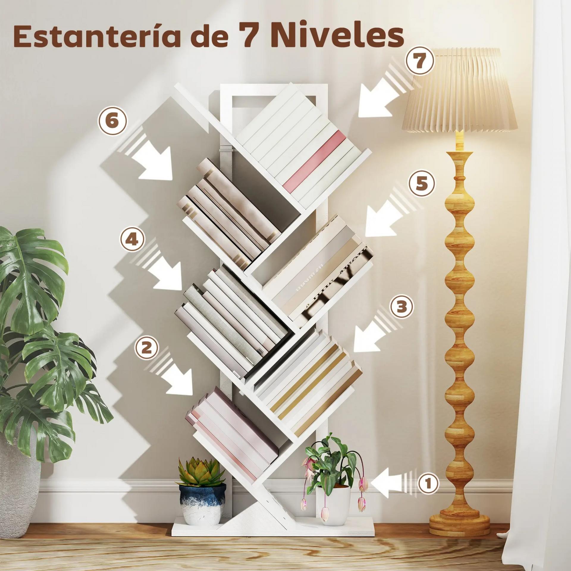 - ORGANIZACIÓN EN CINCO NIVELES: Con siete estantes, este mueble estantería en forma de árbol es perfecta para exhibir tus libros o incluso CDs y DVDs, álbumes. Es ideal para mantener tus lecturas favoritas ordenadas y crear un rincón acogedor