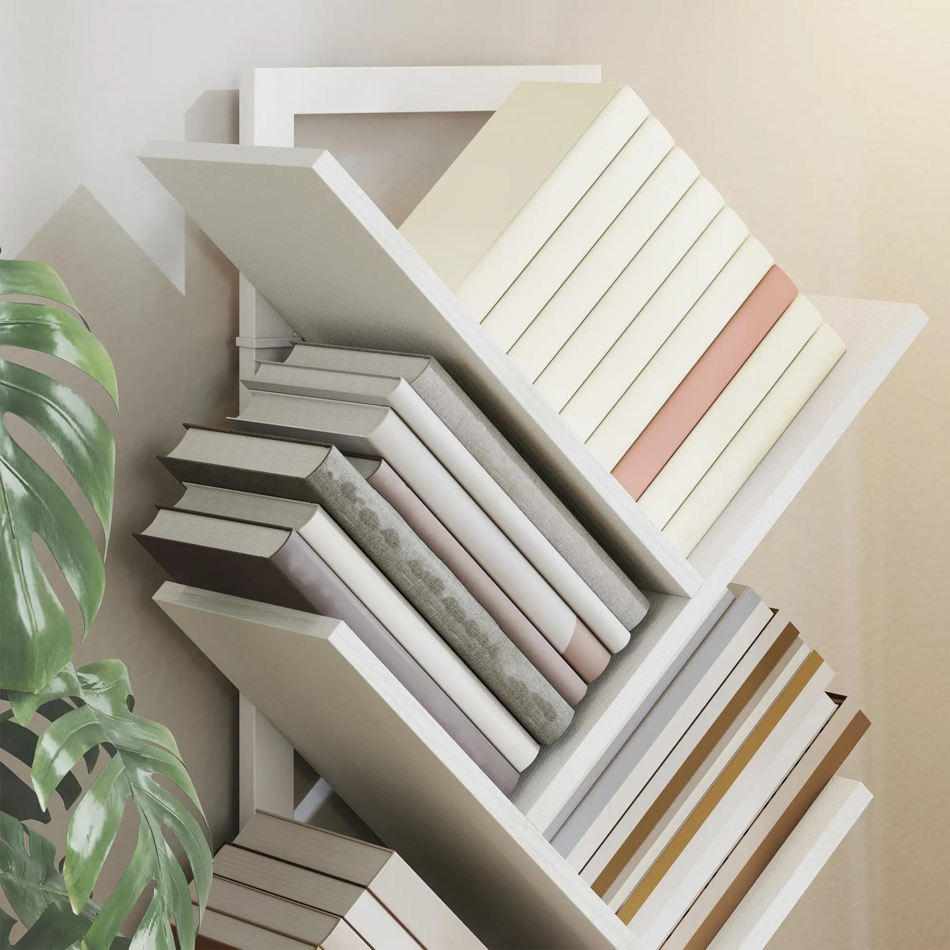 DISEÑO ÚNICO EN FORMA DE ÁRBOL: Esta estantería blanca destaca por su diseño original en forma de árbol, que no solo es visualmente atractivo, sino que también facilita y hace más eficiente la organización de tus libros favoritos