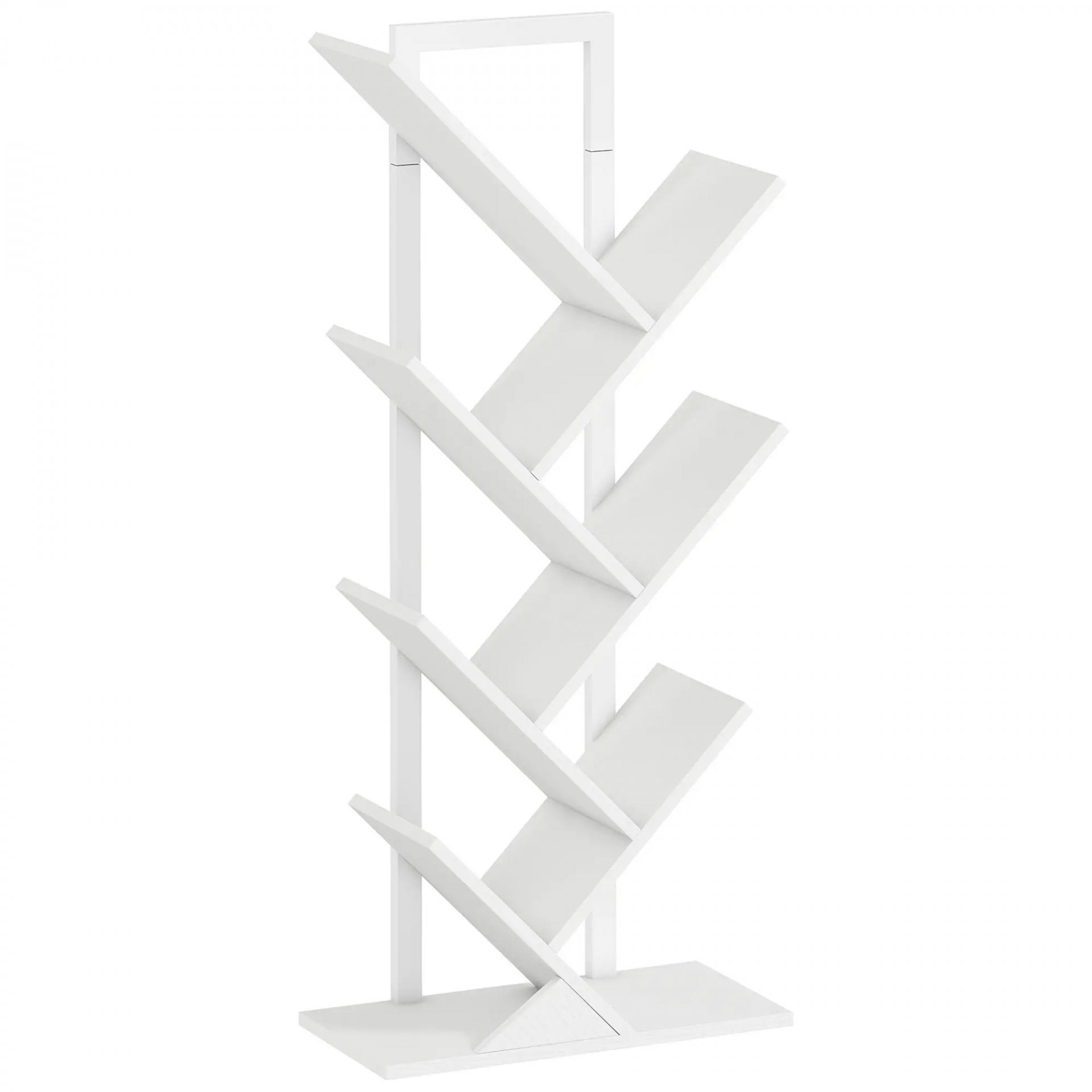 Estantería en Forma de Árbol con 7 Estantes y Sistema Antivuelco para Salón Dormitorio 50x24x109 cm Blanco