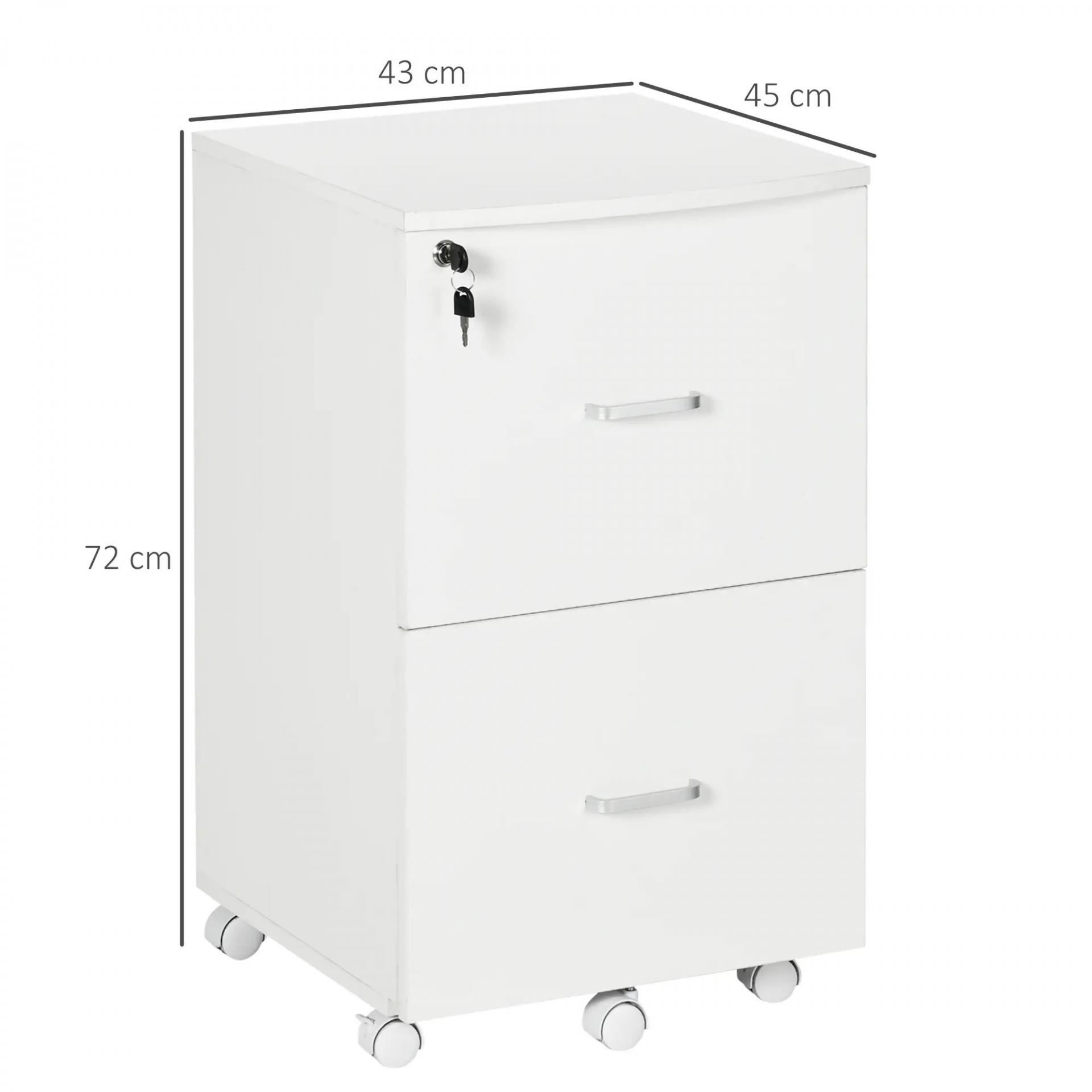 Cajonera de Oficina Mueble Auxiliar con 2 Cajones Cierre con Llave para Estudio Despacho 43x45x72 cm Blanco