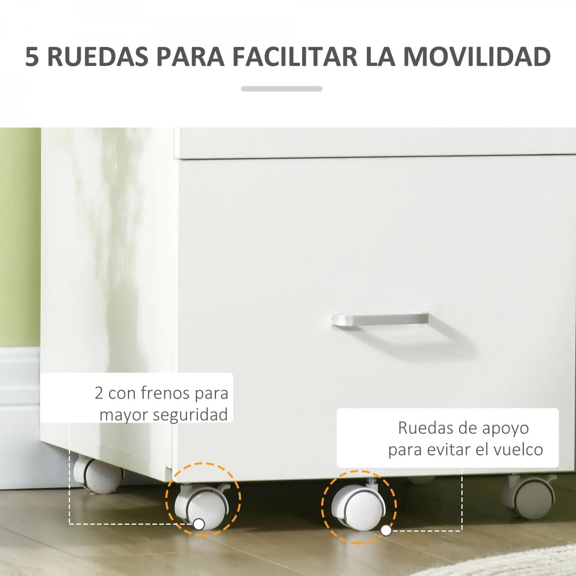 - FÁCIL DE MOVER: Esta cajonera de oficina con llave viene con 5 ruedas giratorias, 2 de las cuales tienen frenos de bloqueo que hacen que esta solución de almacenamiento móvil sea muy fácil de mover y fijar en su posición, y la 5 en medio que evita que al abrir los cajones se vuelque accidentalmente