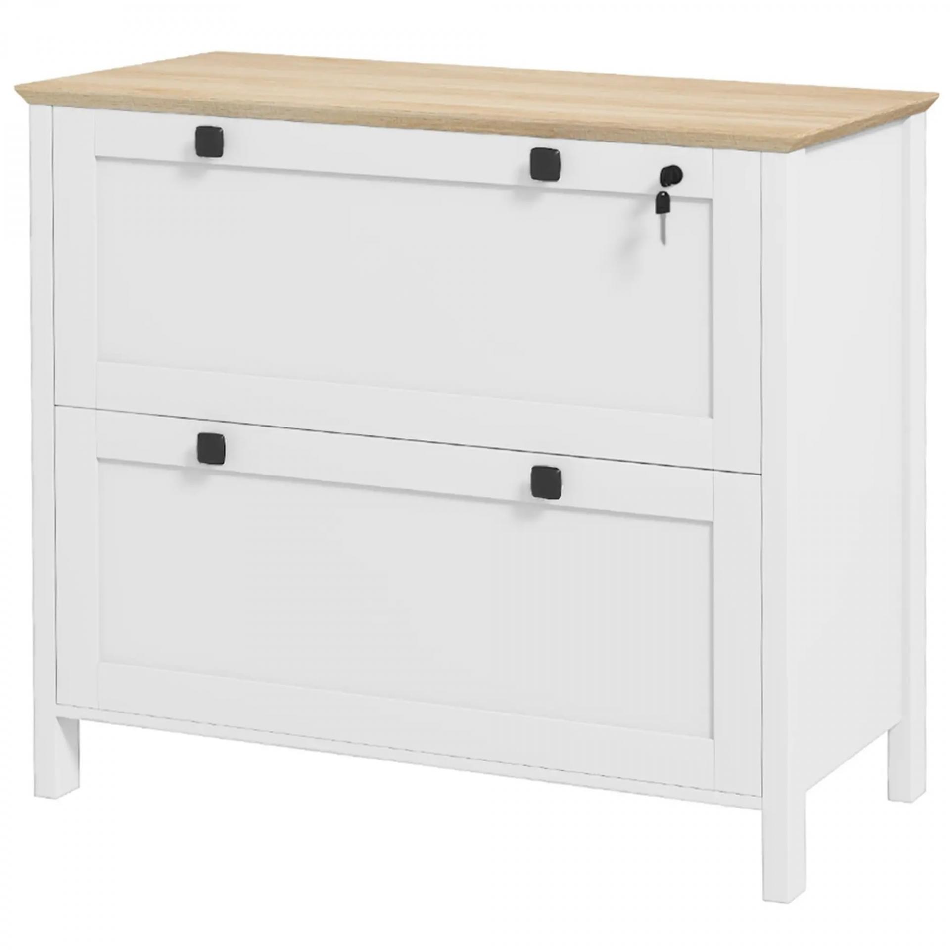 Mueble Archivador con 2 Cajones 2 Barras Colgantes Cerradura y 2 Llaves para Tamaño A4 79x40x72 cm Blanco y Roble