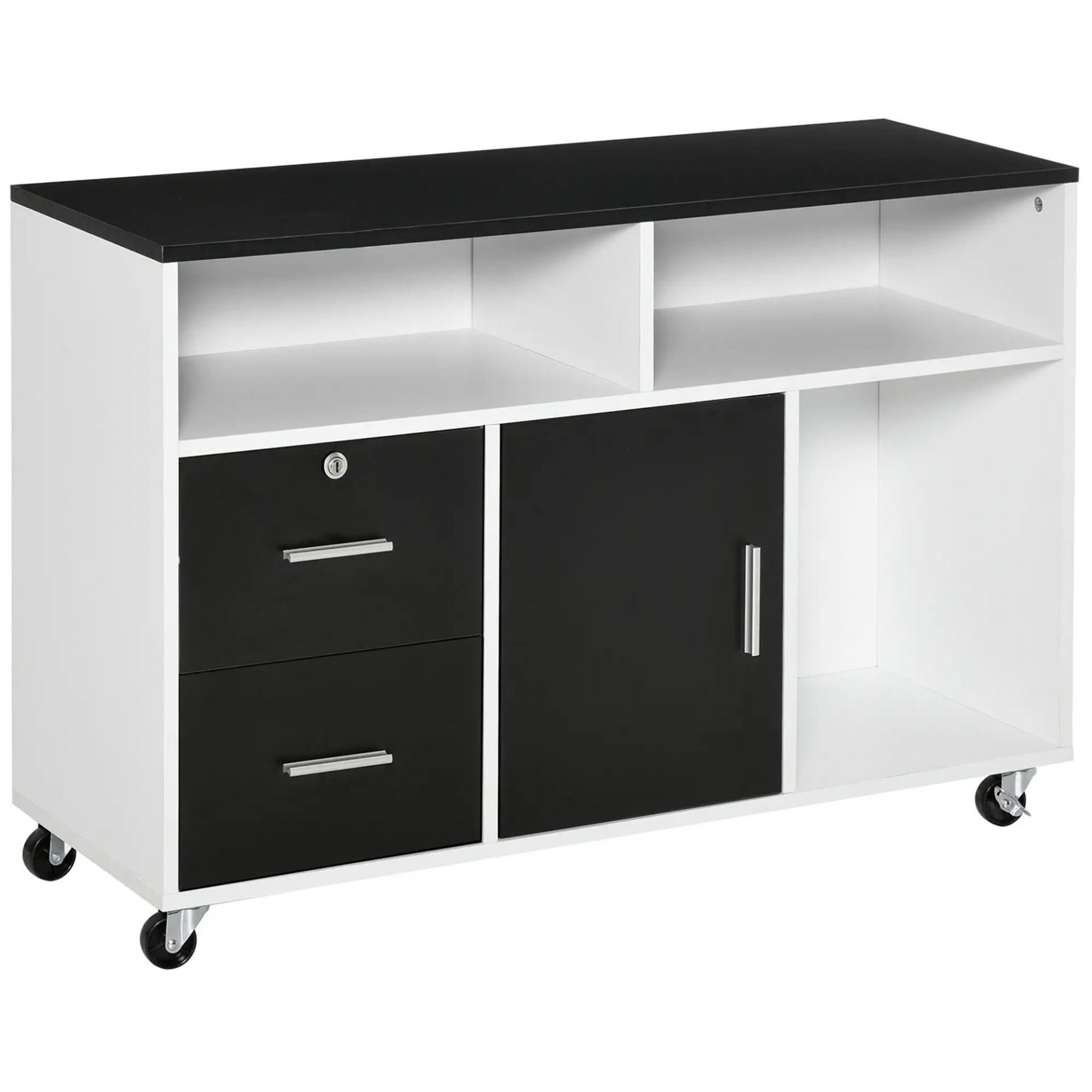 Mueble Auxiliar de Oficina Mueble Archivador con Ruedas Estantes y Cajones Armario Multiusos con Gran Almacenaje 100x35x65 cm Negro y Blanco