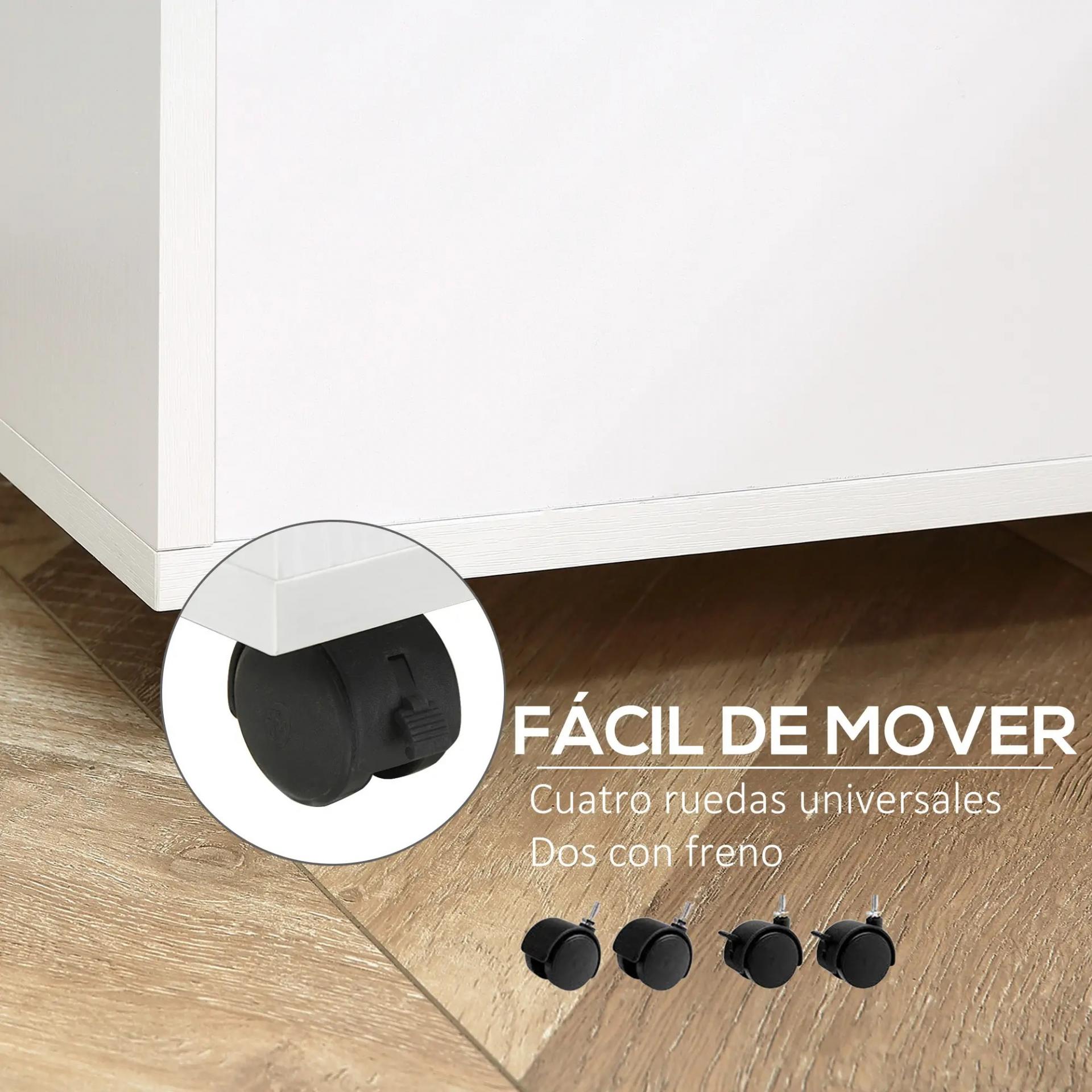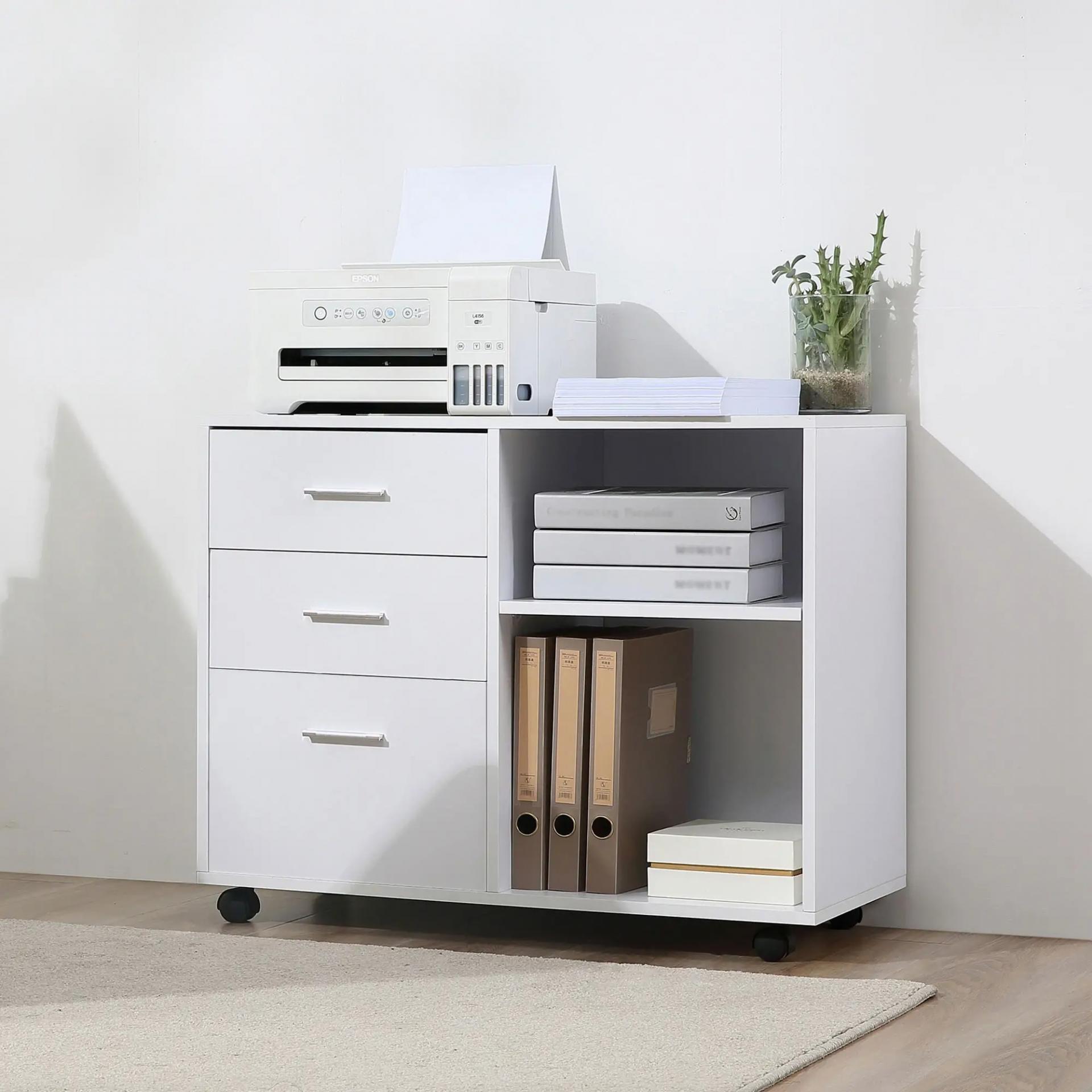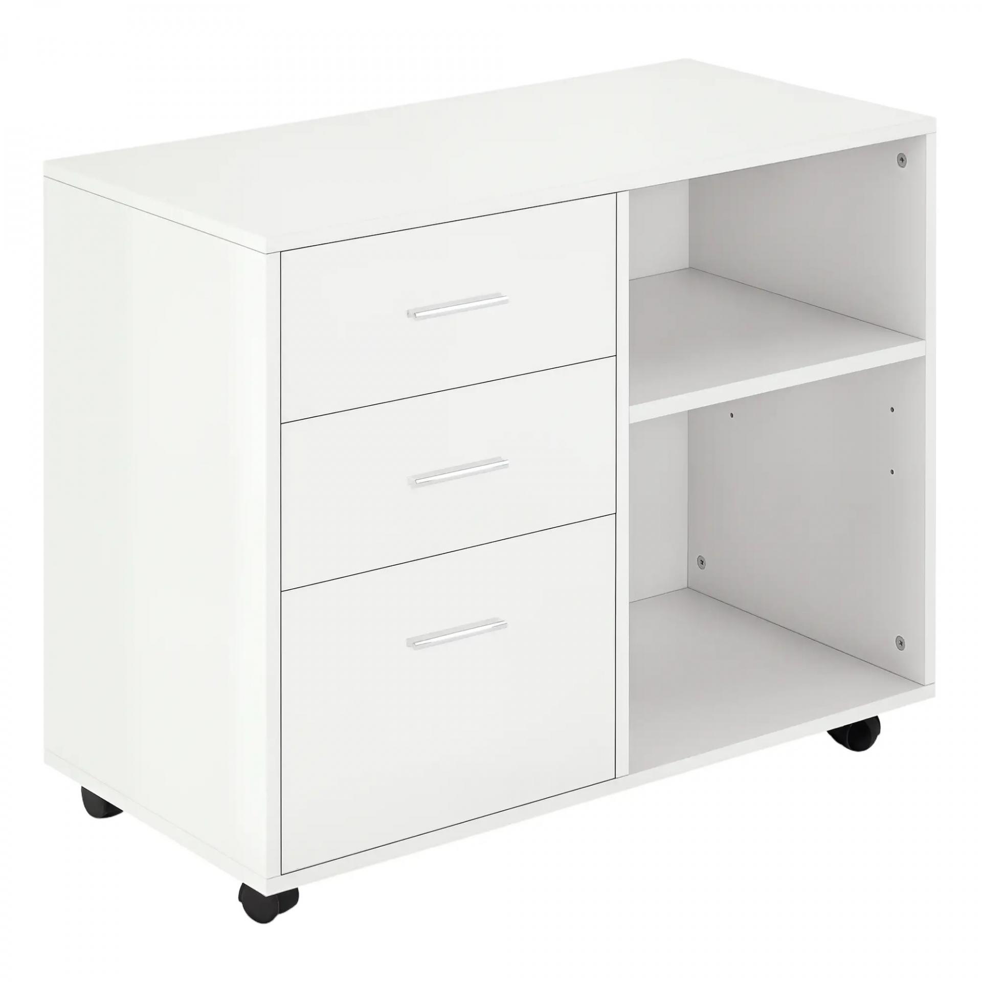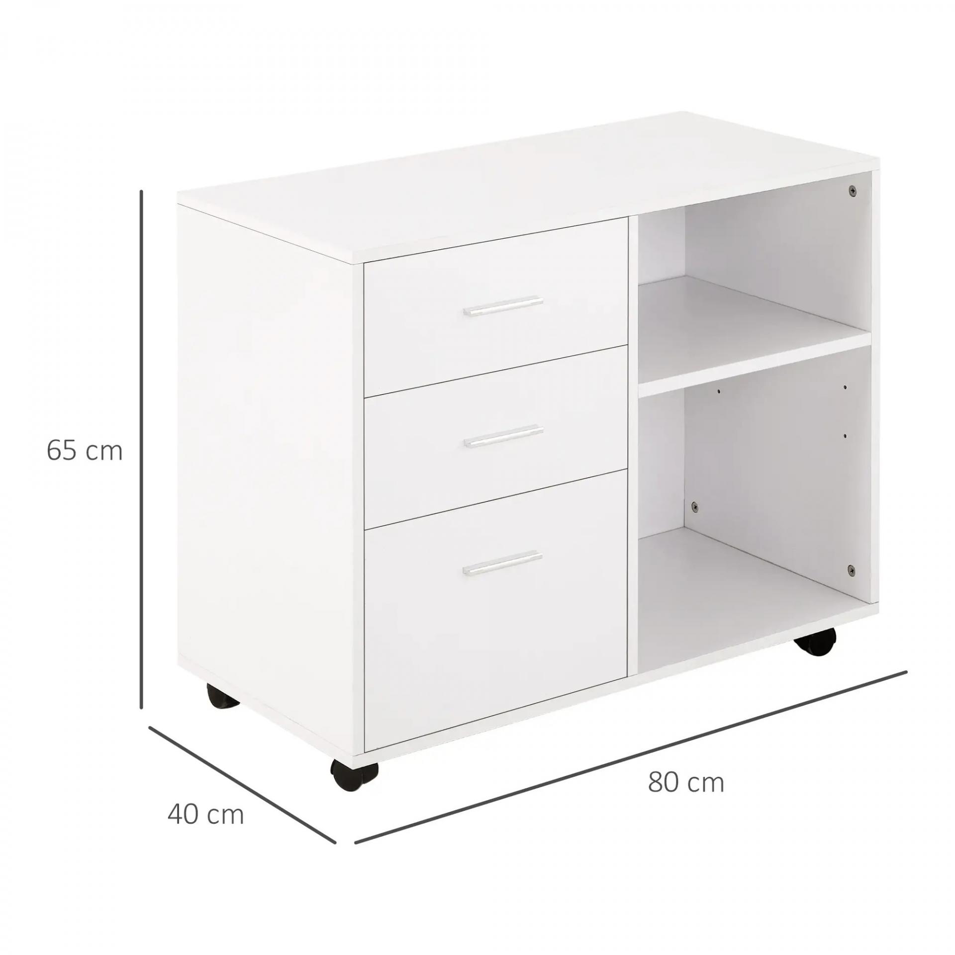 Armario de Oficina para Impresora Mueble Multifuncional con 3 Cajones Estantes y Ruedas 80x40x65 cm Blanco