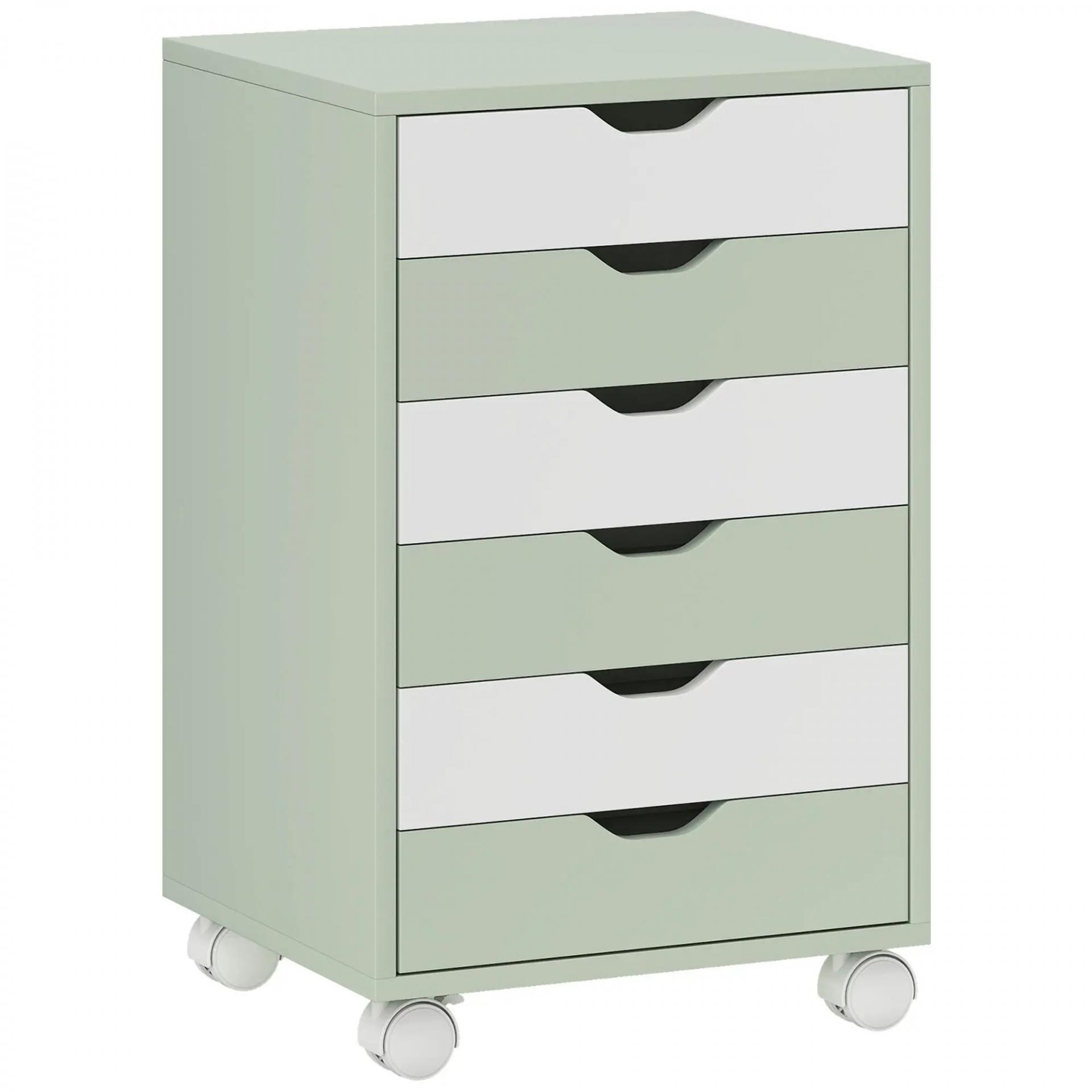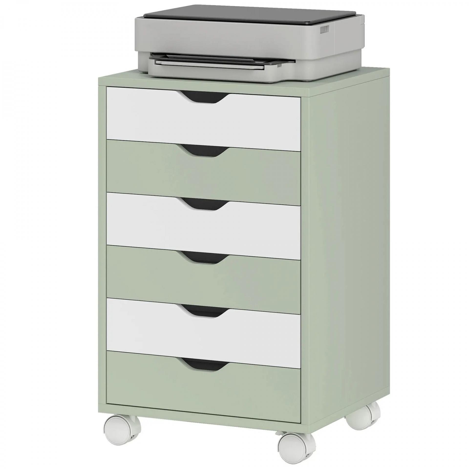 Cajonera Escritorio Archivador Móvil con 6 Cajones Ruedas Guías Deslizantes Silenciosas para Oficina Casa Verde