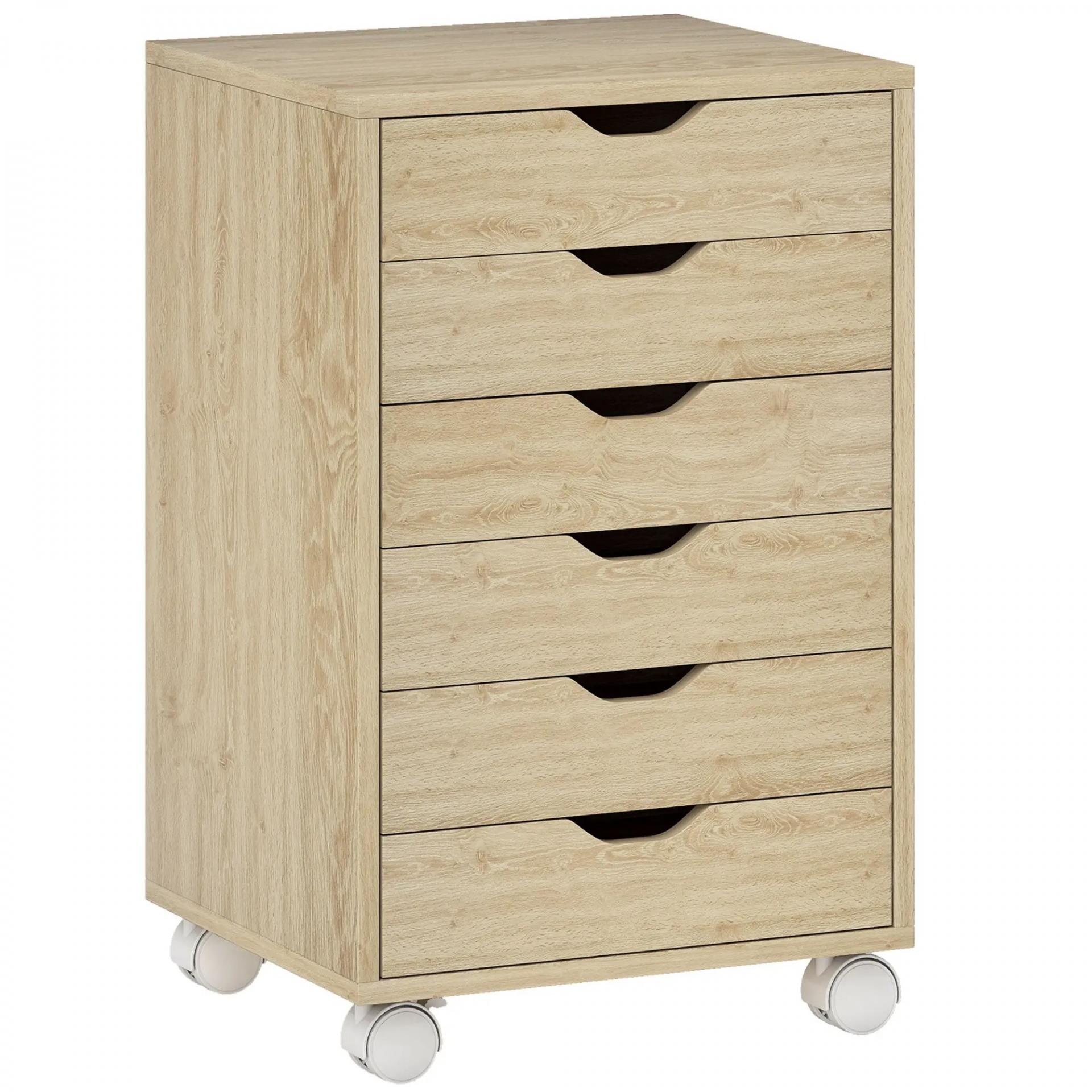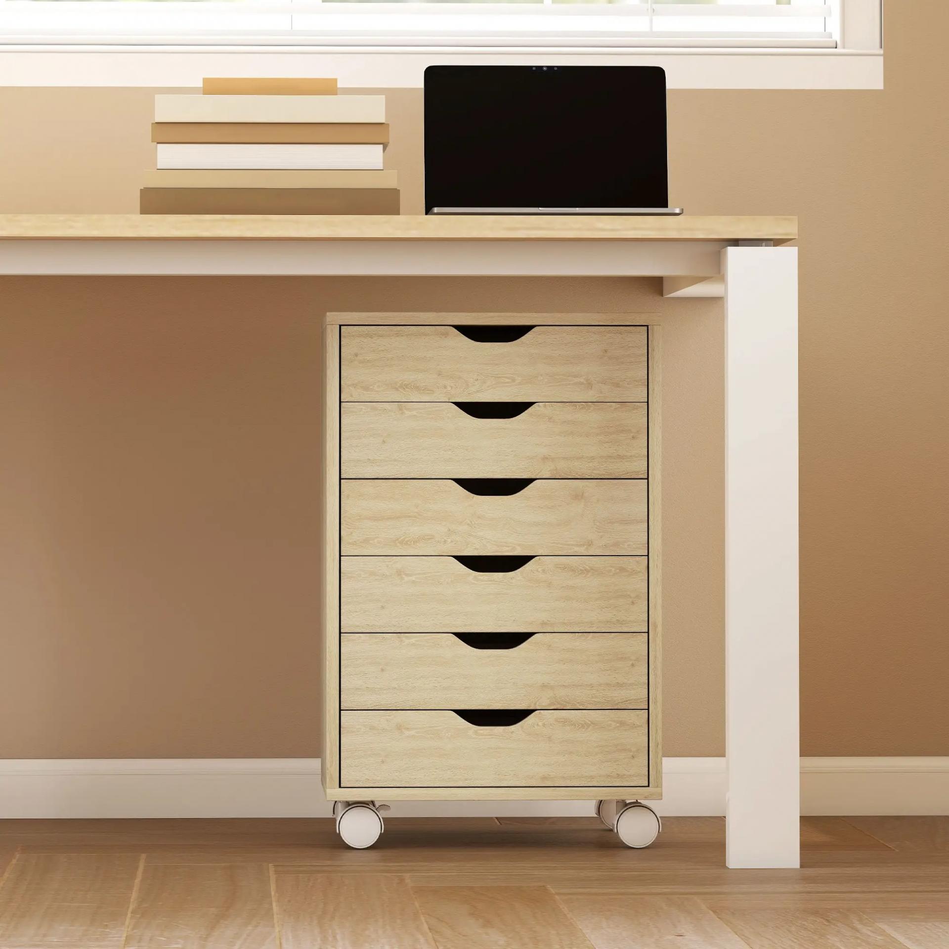 Cajonera Escritorio Archivador Móvil con 6 Cajones Ruedas Guías Deslizantes Silenciosas para Oficina Casa Roble