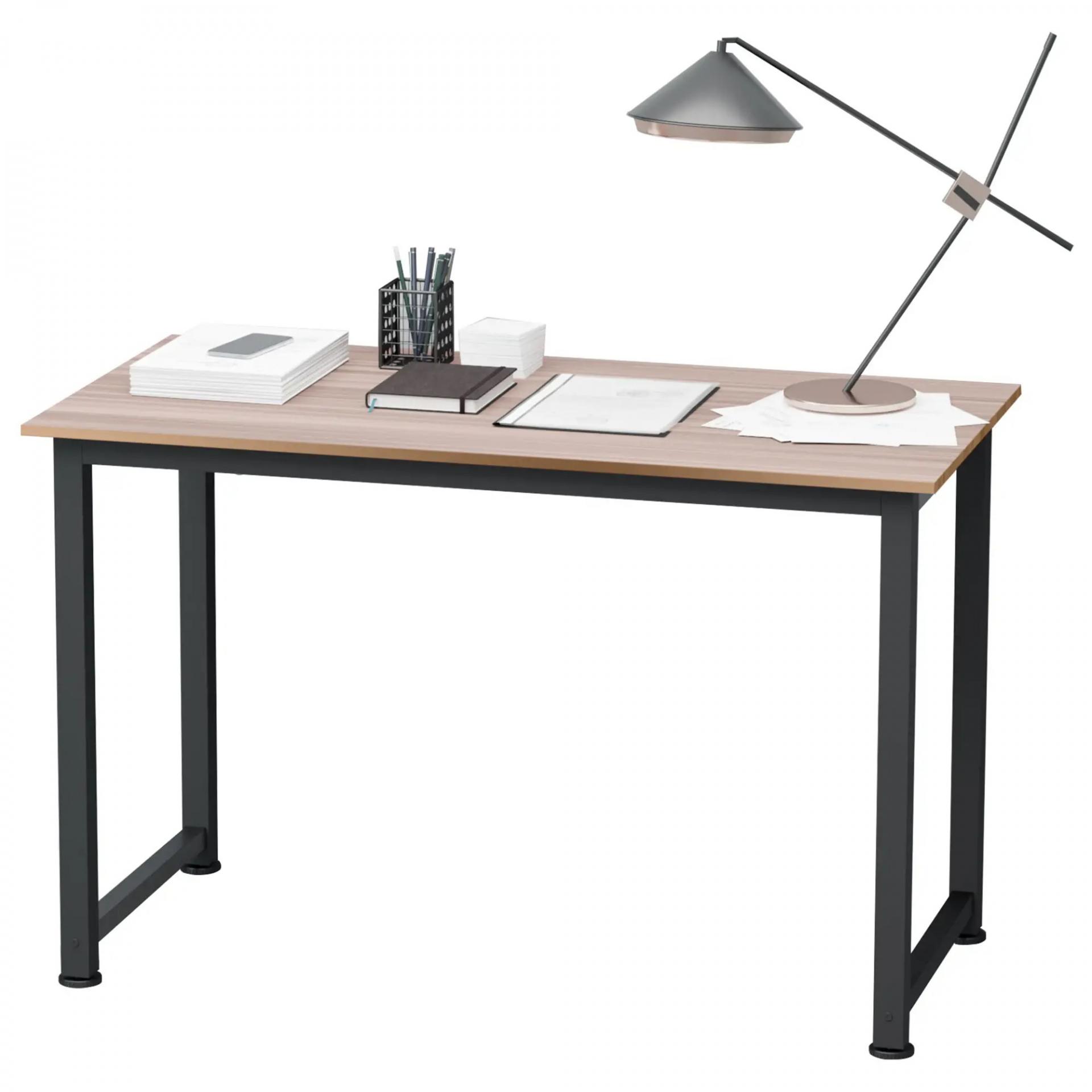 Mesa de Escritorio con Marco de Acero y Patas Ajustables Mesa de Estudio para Oficina Hogar 120x60x76 cm Negro y Natural