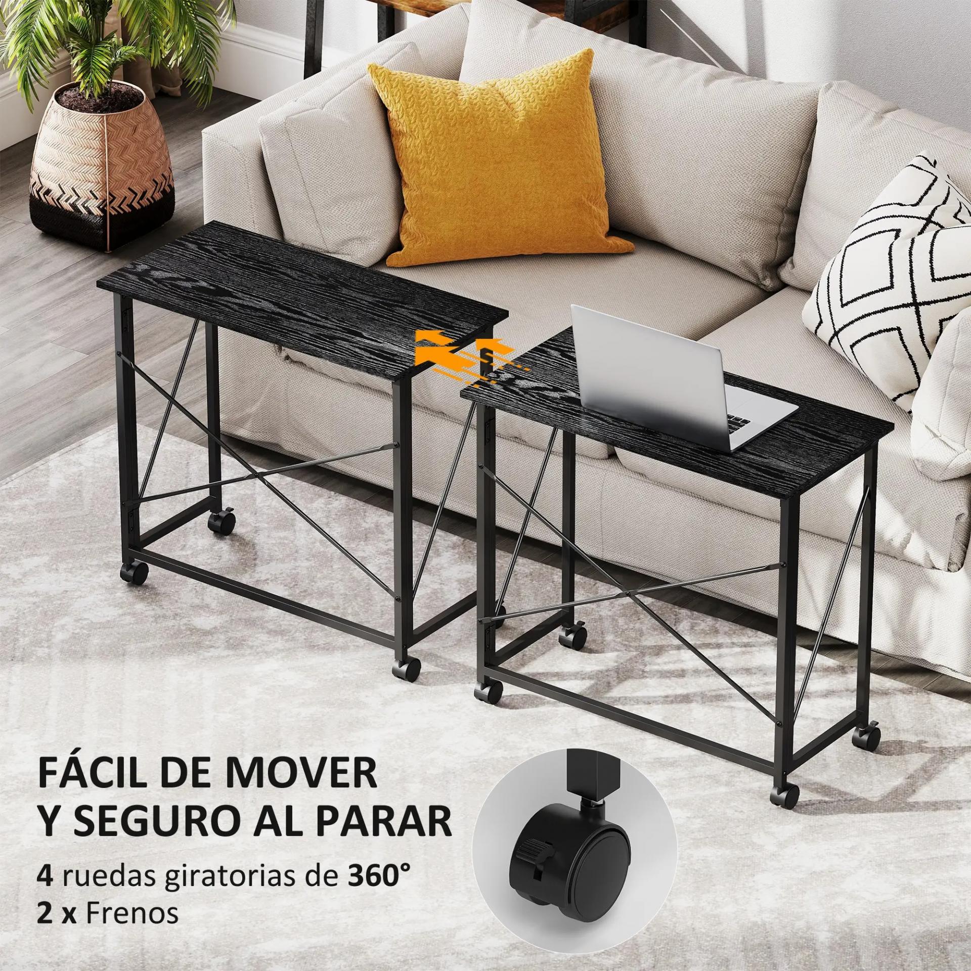 Escritorio Plegable con Ruedas y Estructura Resistente Ideal para Oficina y Estudio 80x40x75 cm Negro