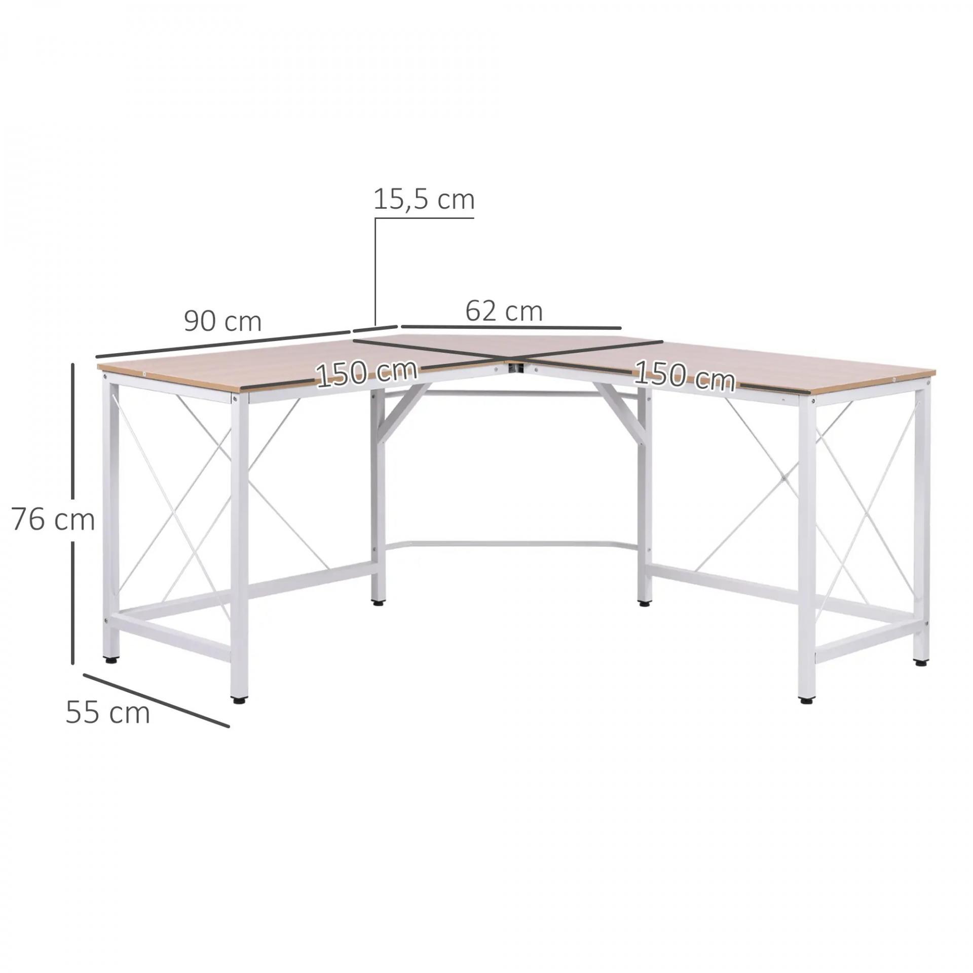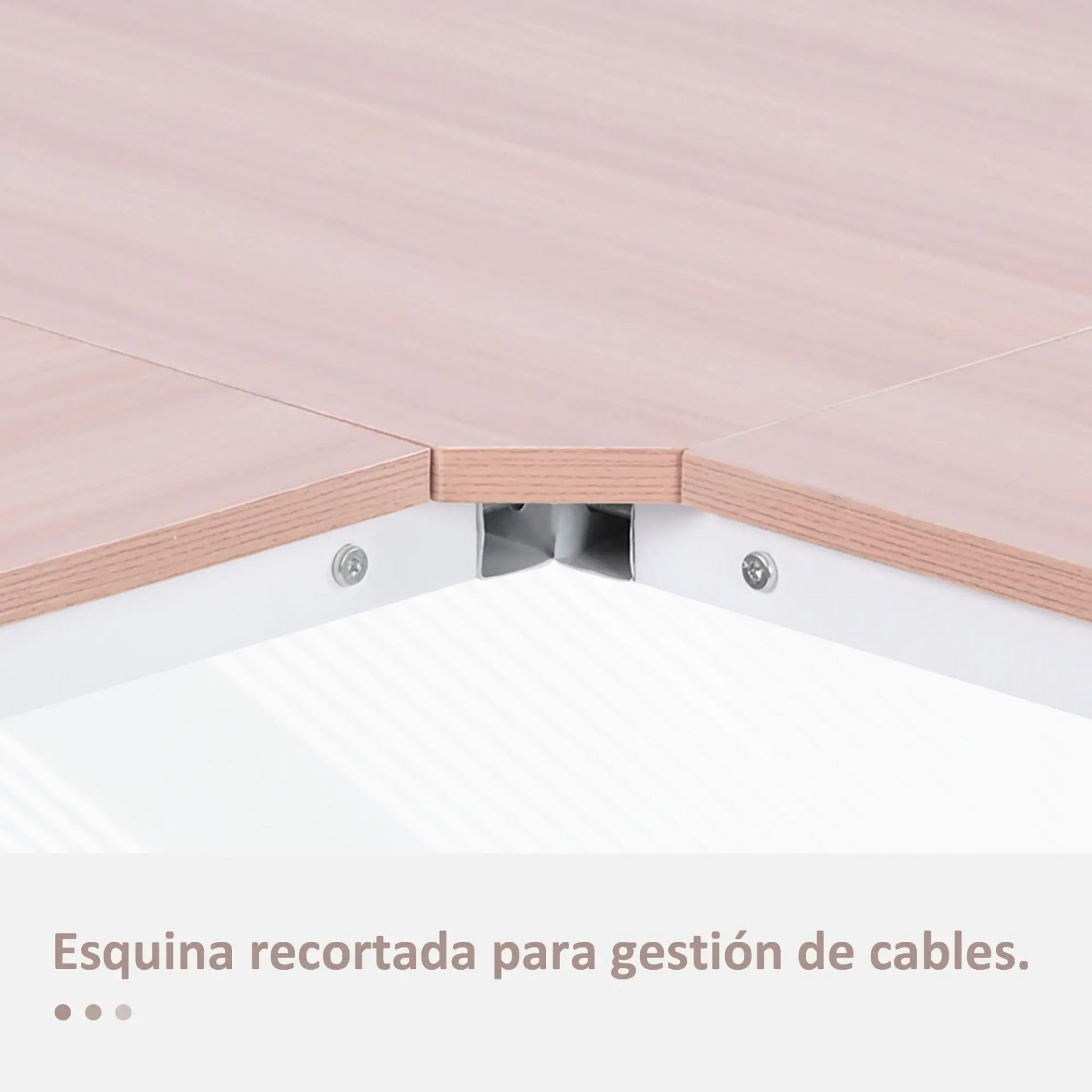 - ESTRUCTURA RESISTENTE: Fabricada en melamina de madera con un grosor de 15 mm y estructura de metal, esta mesa en L, es resistente e ideal para un uso prolongado. Además, es fácil de limpiar con un paño húmedo