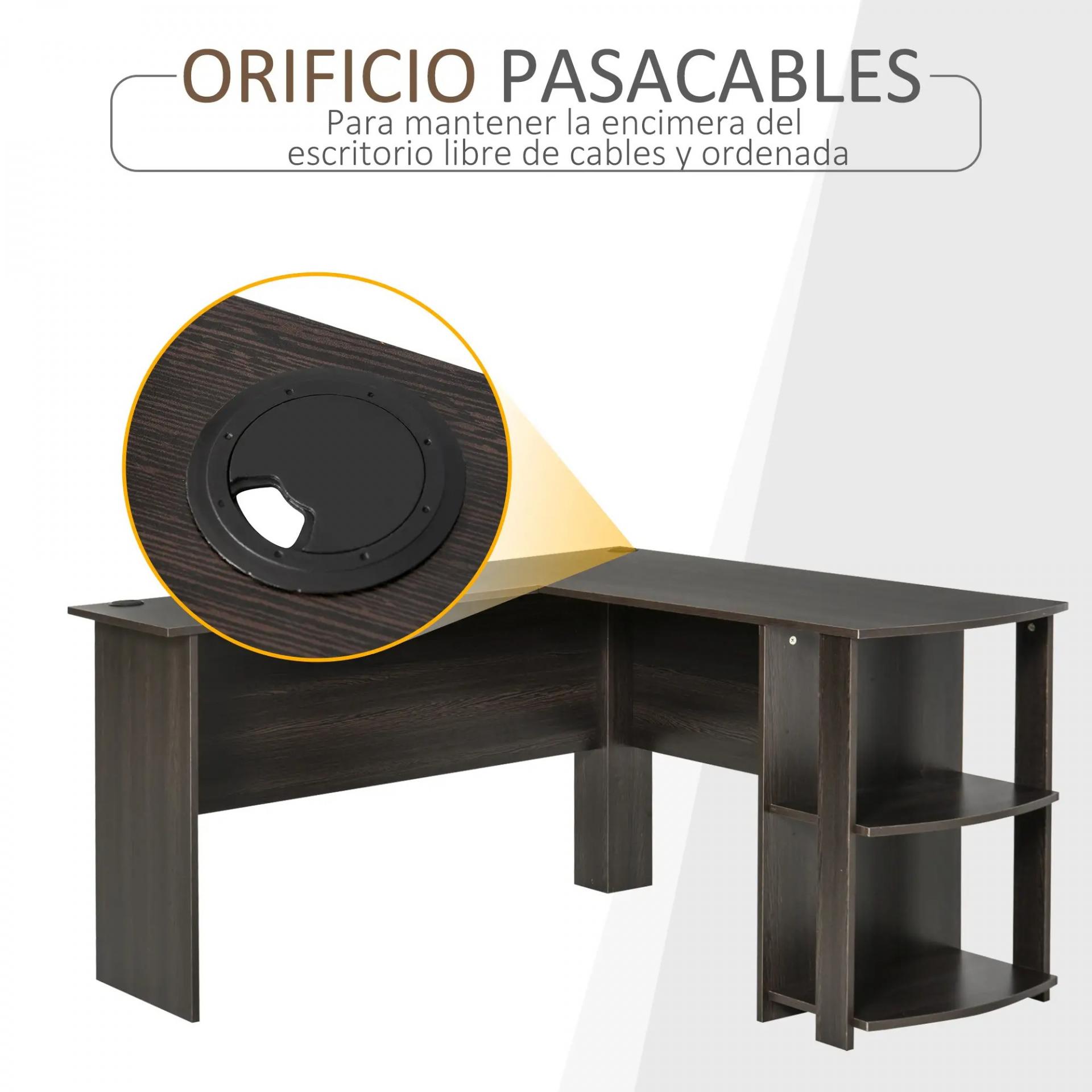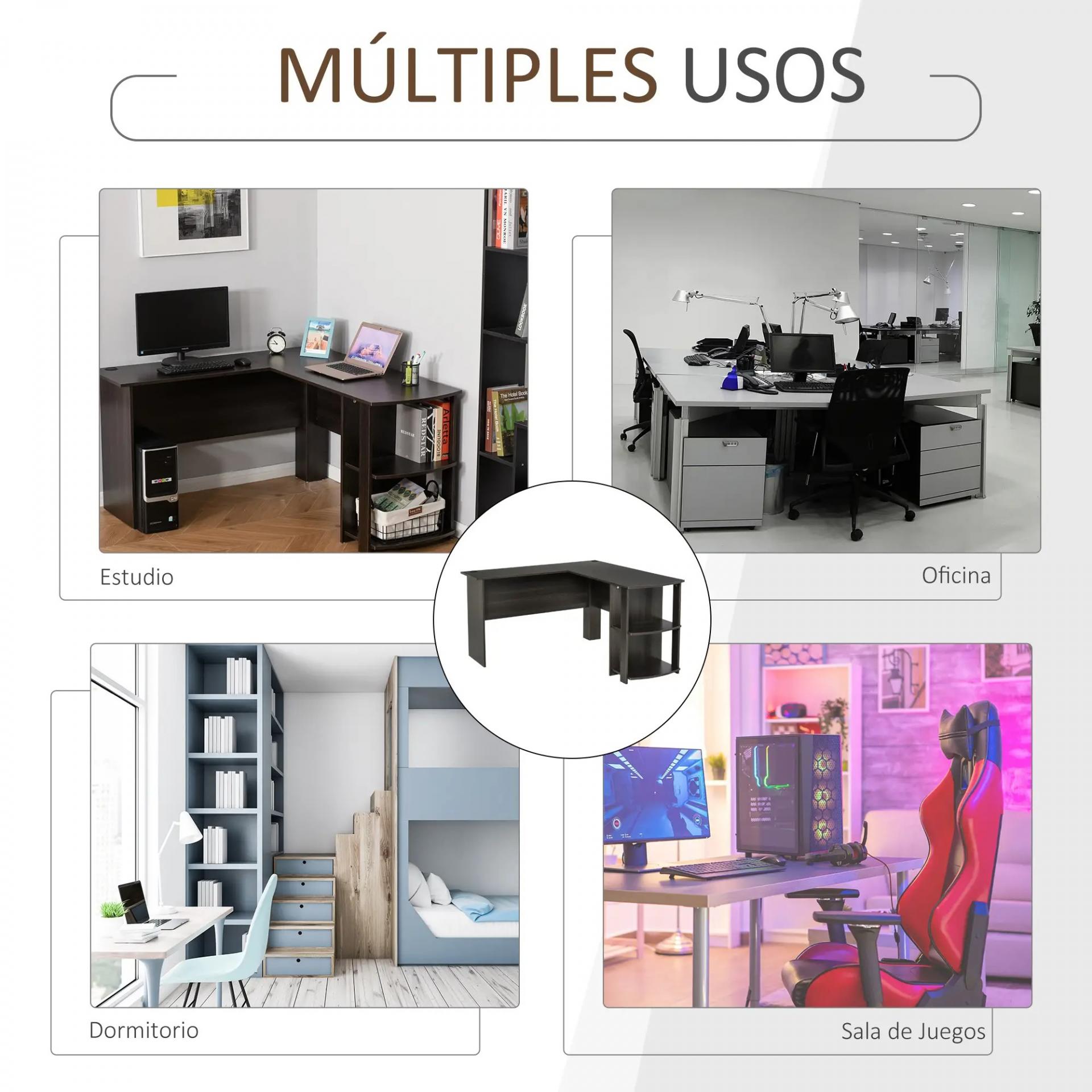 Mesa de Ordenador PC Escritorio para Oficina Hogar Tipo Esquinera Forma L con Estantes 136x130x72cm Madera