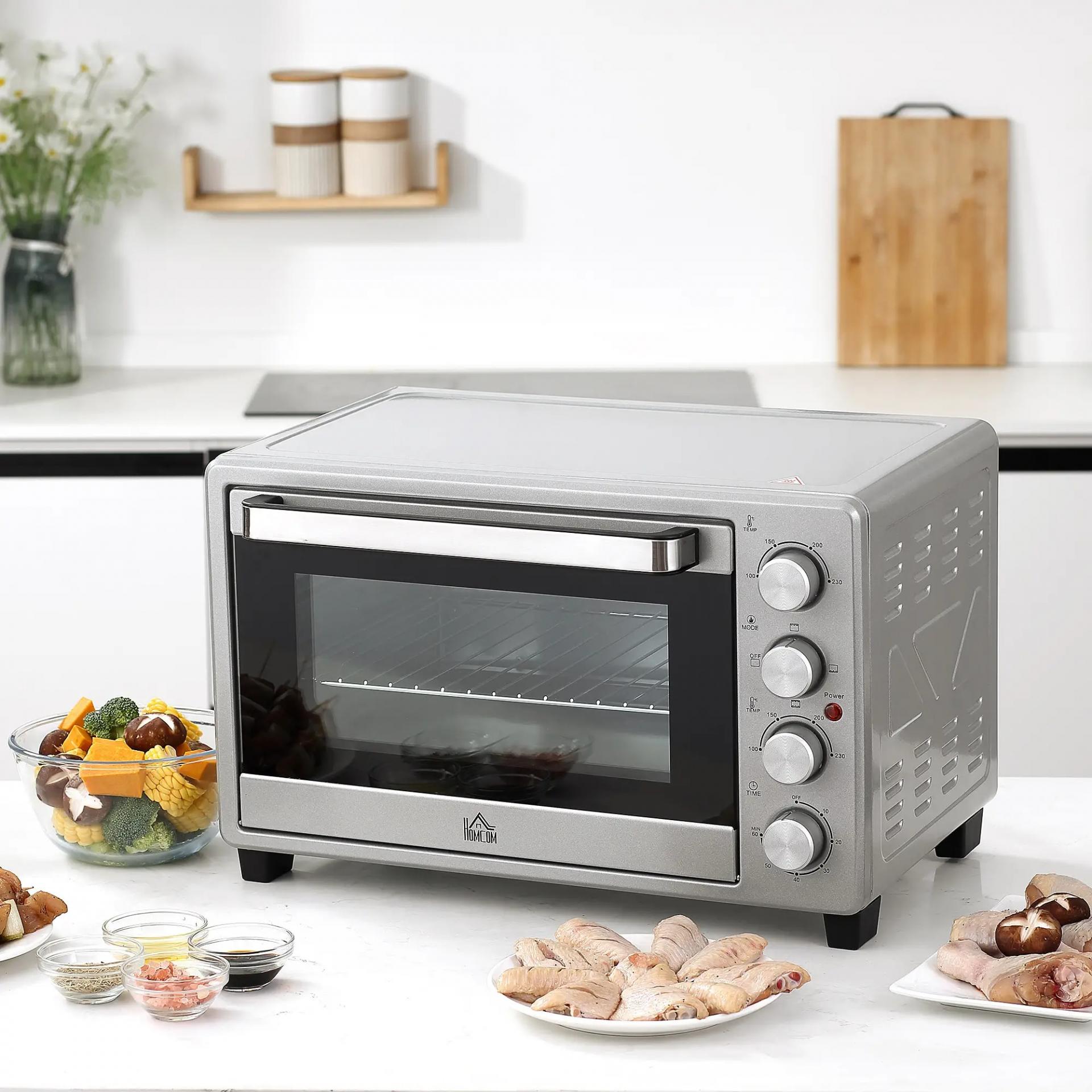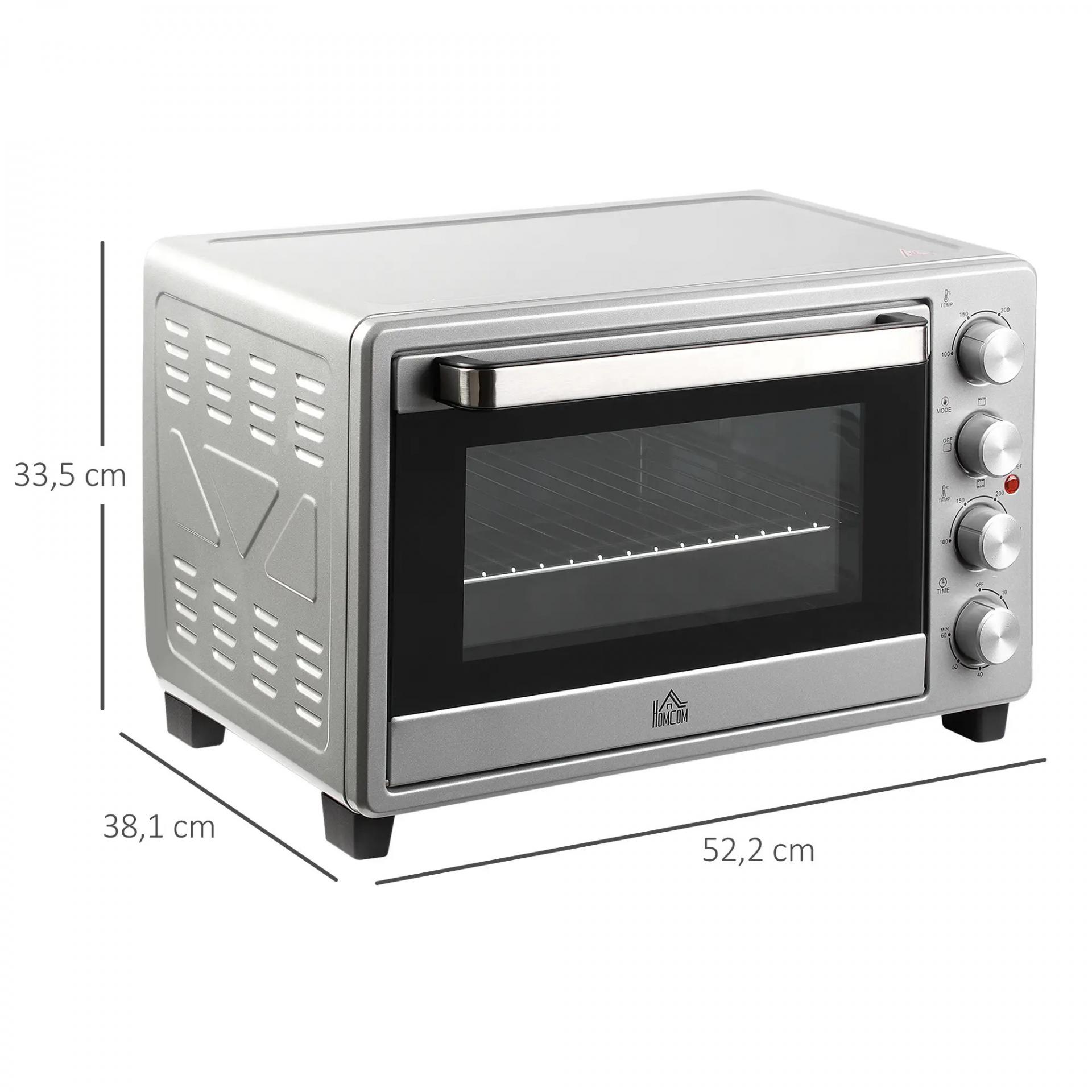 Horno Eléctrico de Sobremesa 32L 1600W con 3 Modos de Calor Temporizador y Temperatura Regulable 52,2x38,1x33,5 cm Plata