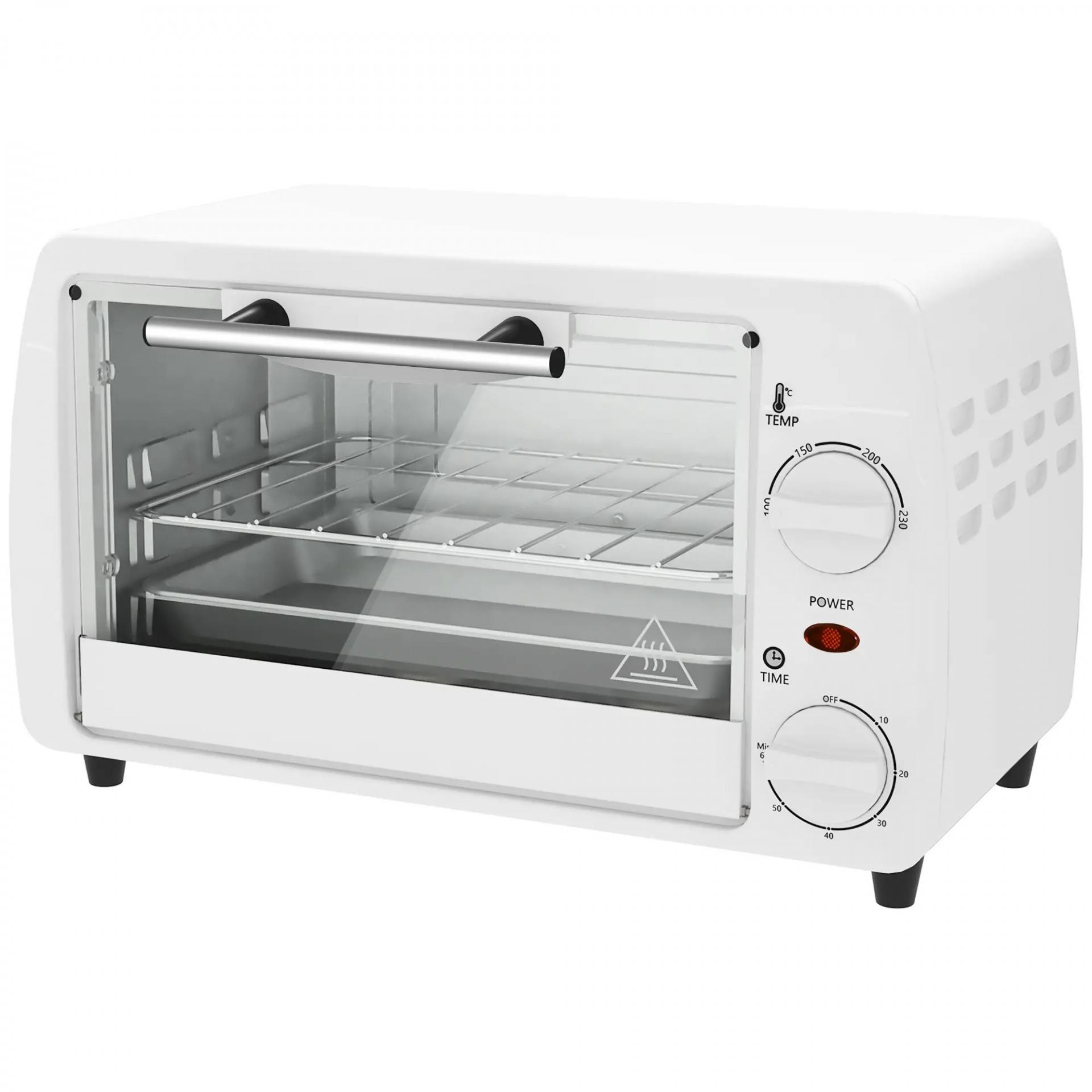 Horno Eléctrico Sobremesa 10L 750W Horno Eléctrico Pequeño Temperatura 230 ℃ y Temporizador 36,5x26x22 cm Blanco