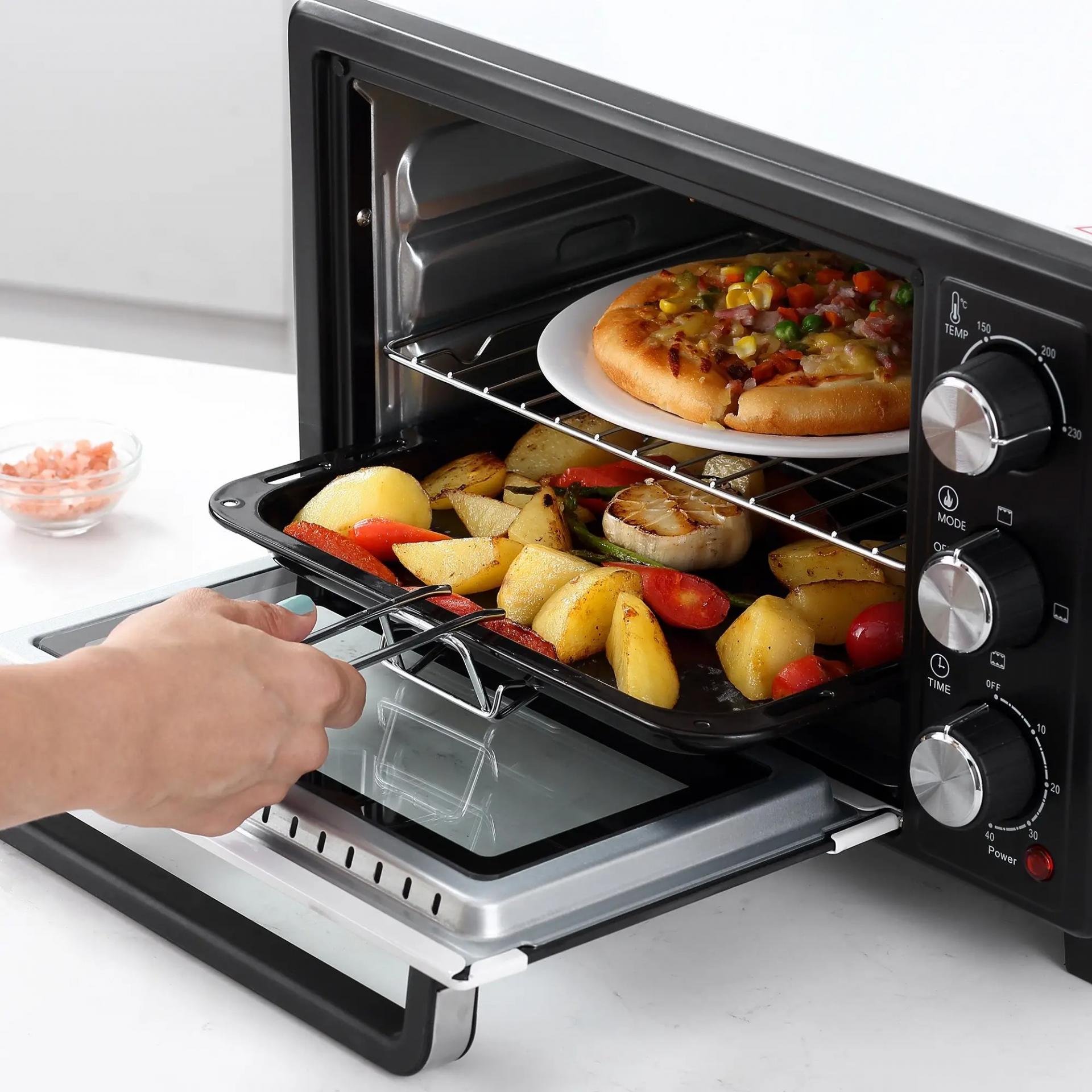 - ACCESORIOS INCLUIDOS: Cuenta con 1 rejilla y 1 bandeja con asa para hornear y preparar deliciosas comidas. 1 asa de bandeja proporciona mucha comodidad. Y para ayudarte a mantener el horno pequeño limpio en todo momento, también tiene una bandeja recogemigas inferior