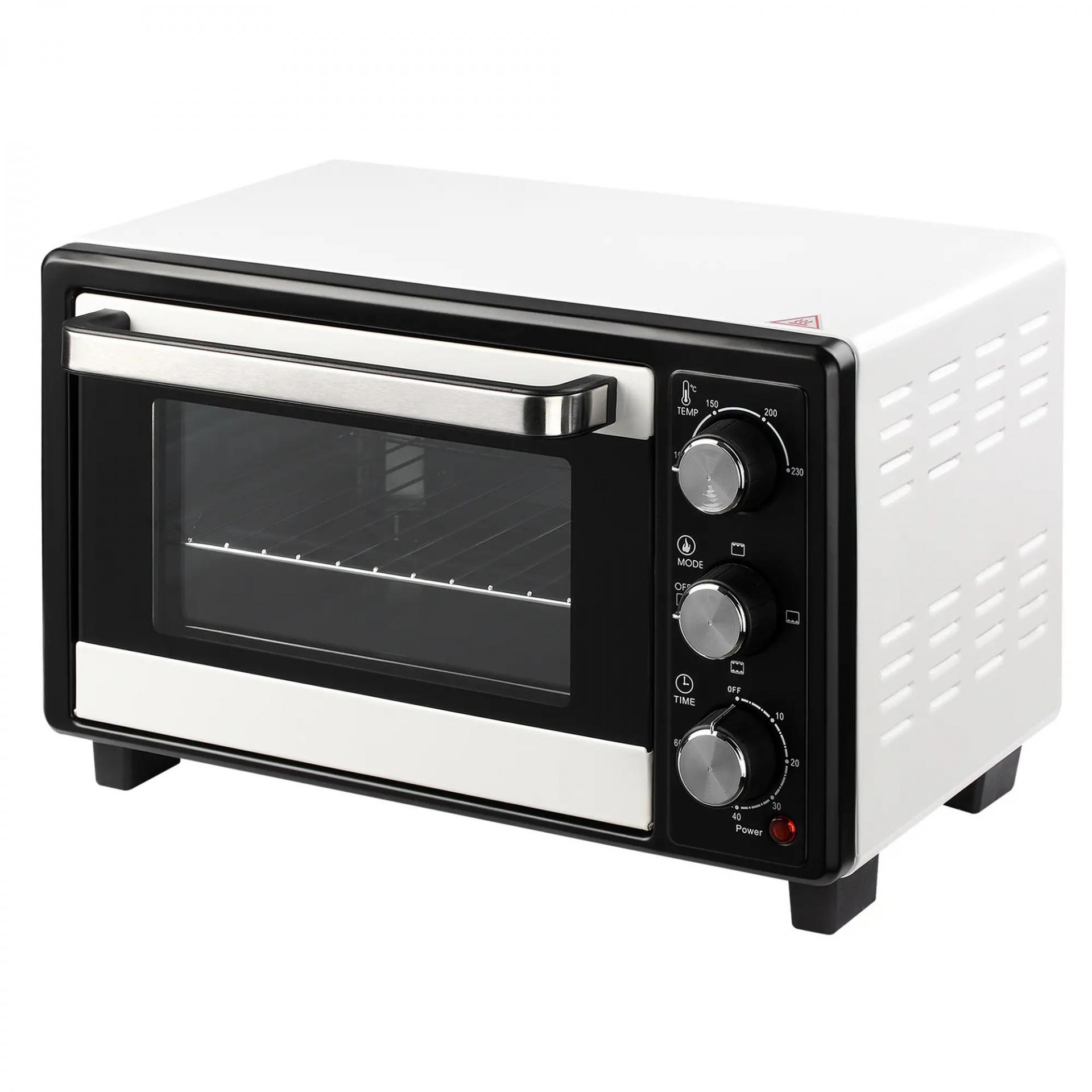 TEMPERATURA Y TEMPORIZADOR AJUSTABLES: La temperatura de este mini horno eléctrico de 1400 W se ajusta fácilmente de 100 °C a 230 °C y tiene práctico temporizador de 0-60 minutos para que puedas ajustar el tiempo de cocción