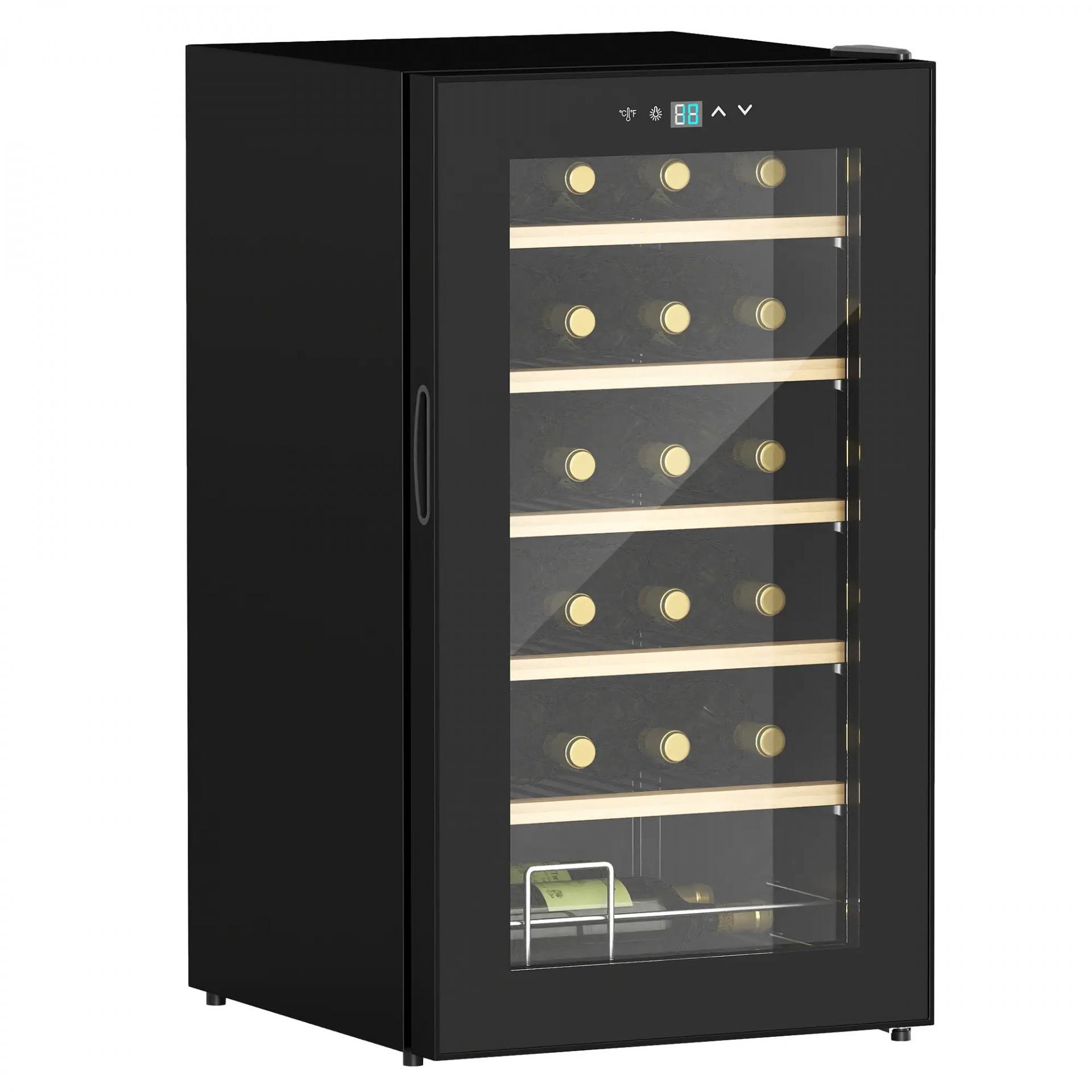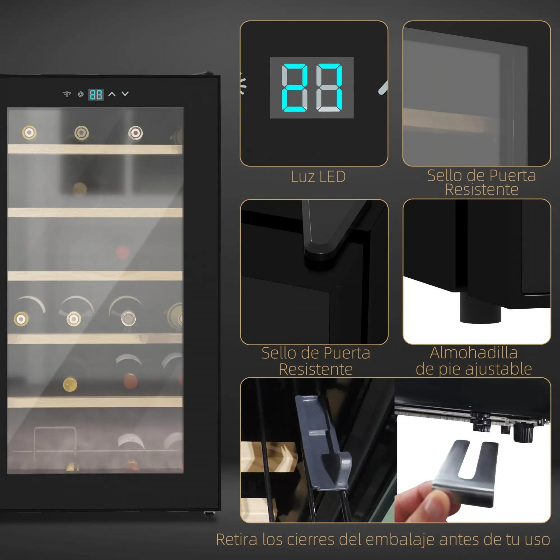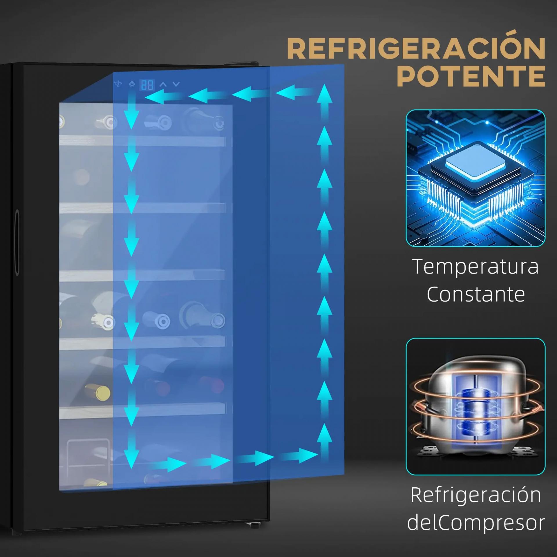 Nevera Vinos 24 Botellas 65L con Luz LED Interior Pantalla Táctil Puerta de Vidrio y 5 Estantes de Metal Negro