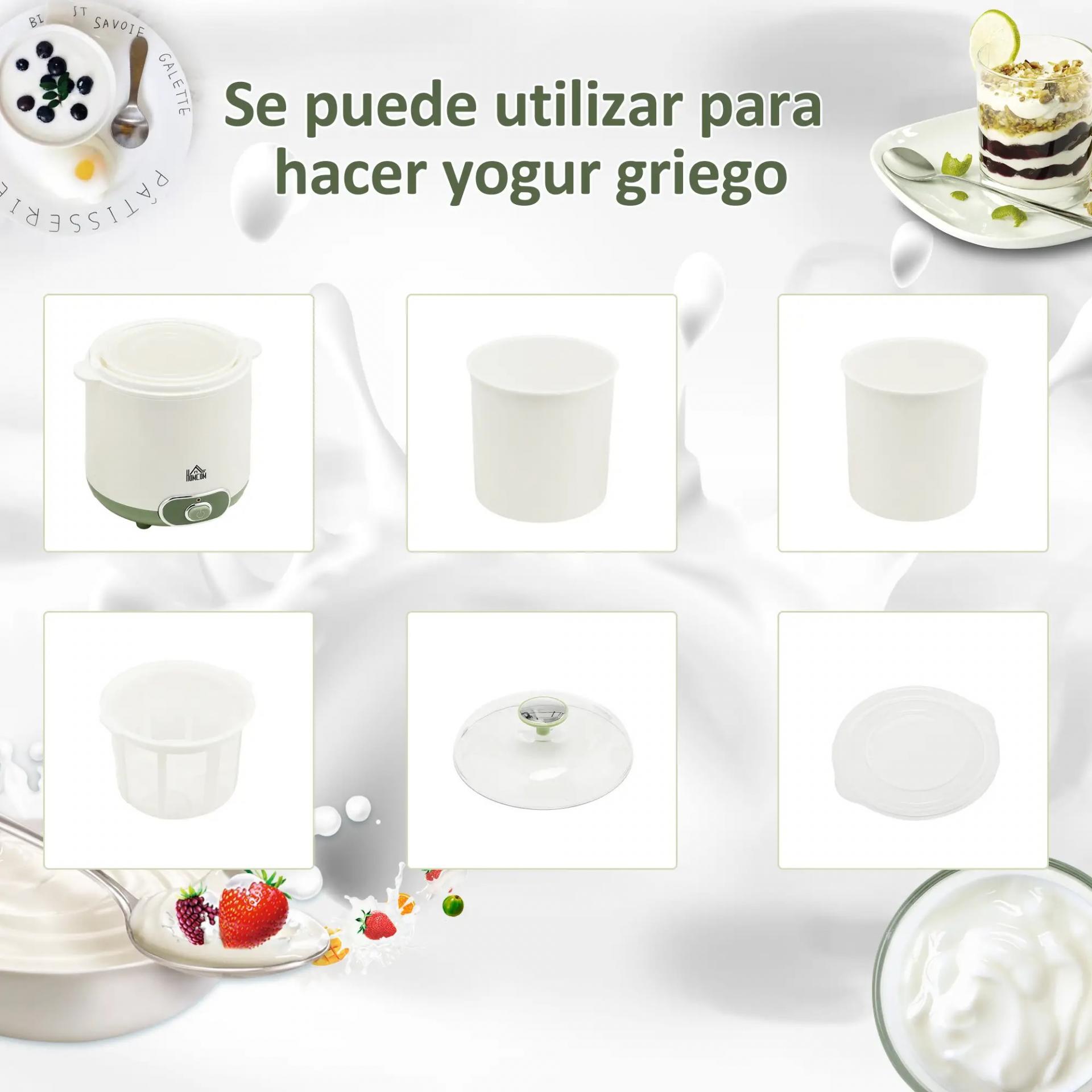 Yogurtera para Hacer Yogur Griego 20 W 1,5L con Filtro Indicador de Encendido y Tecnología PTC 19,5x17,5x21,4 cm Blanco