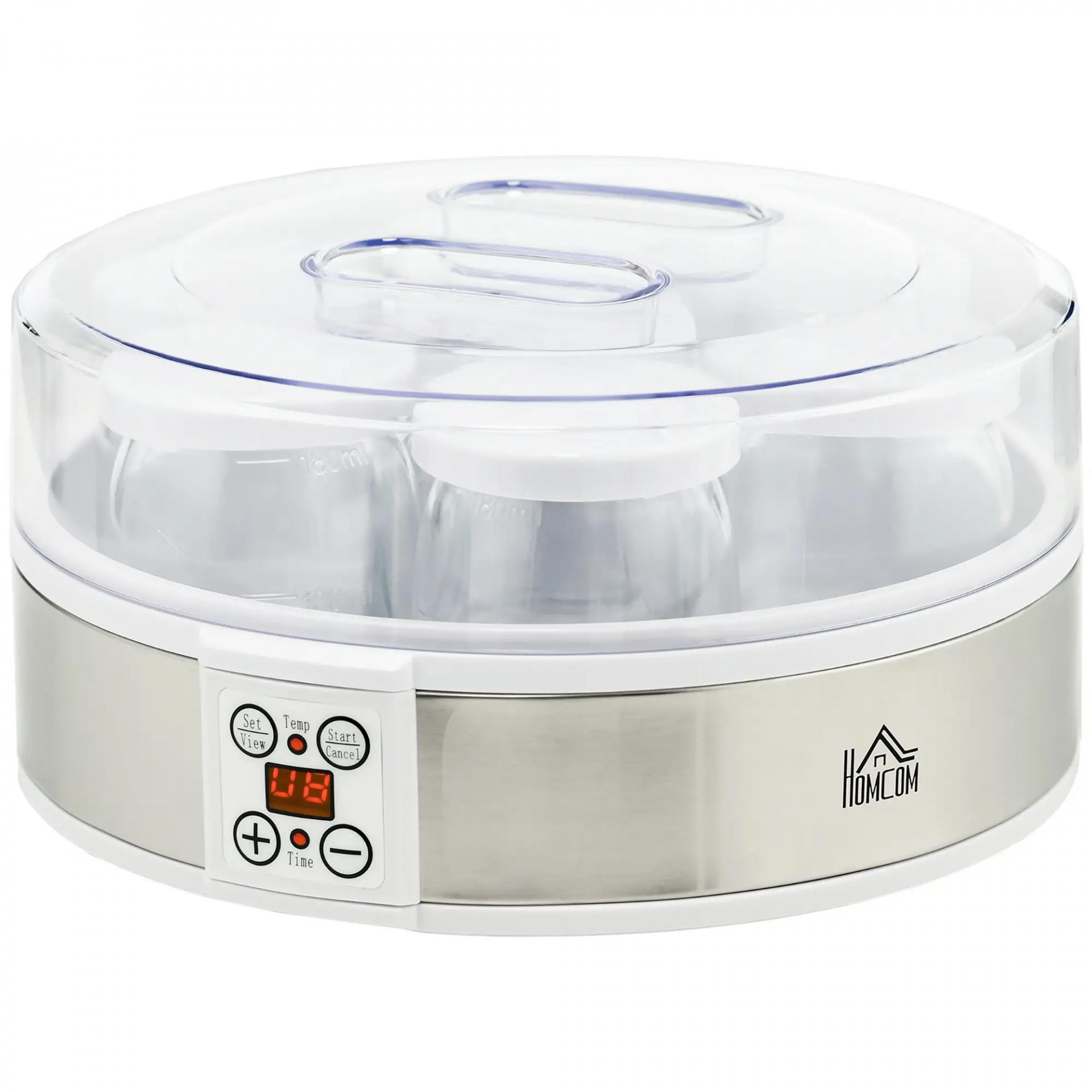 Máquina de Yogur con 7 Tarros de Cristal de 180 ml Termostato Ajustable Temporizador y Pantalla LED 24x24x13 cm Blanco