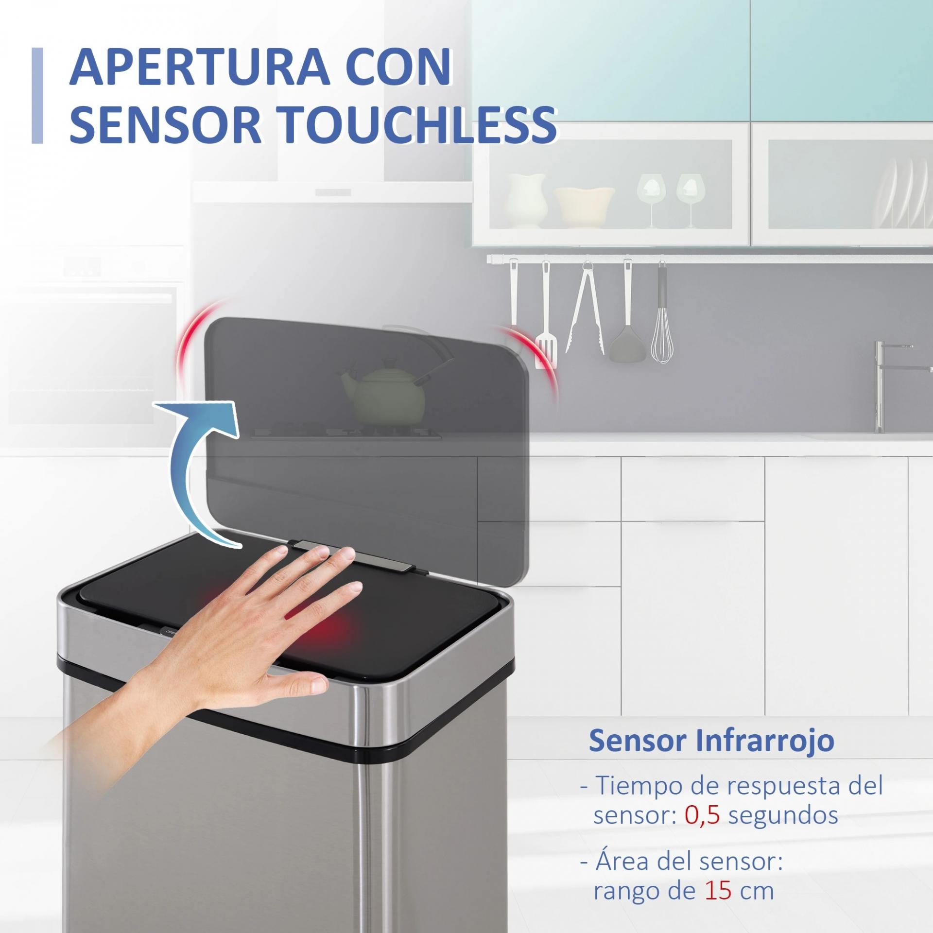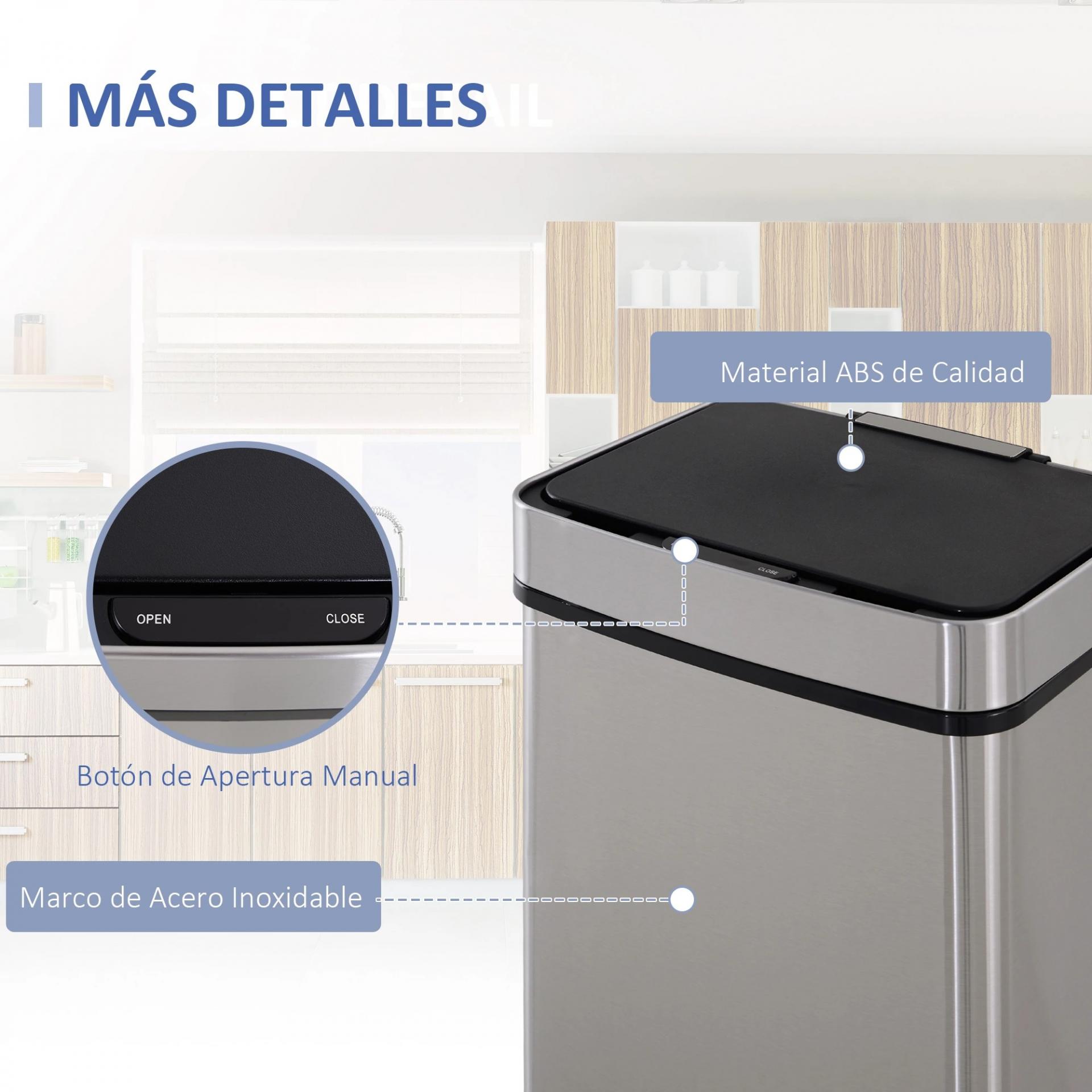 - CON SENSOR DE MOVIMIENTO: El sensor de infrarrojos abre y cierra la tapa automáticamente cuando te acercas con la mano. Esto permite una eliminación higiénica de residuos, evitando la contaminación cruzada de gérmenes. También se puede abrir pulsando el botón "open"