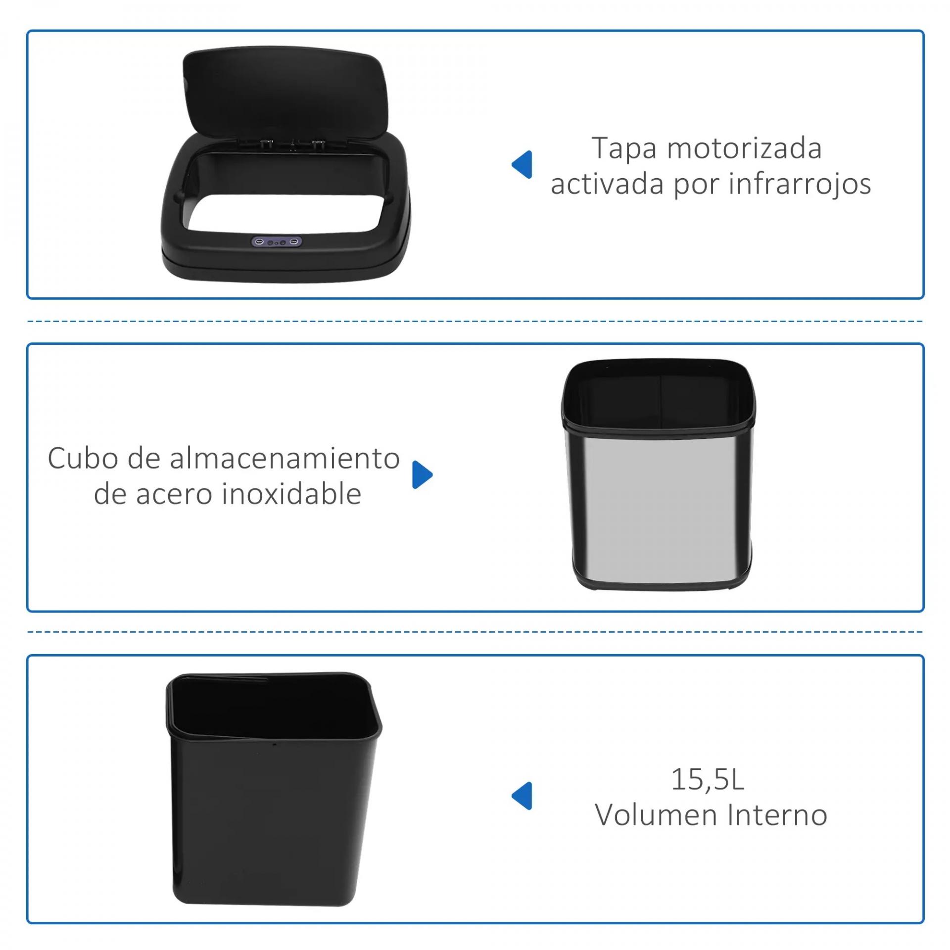 - CAPACIDAD DE 20L: Con capacidad total de 20 L y volumen interno de 15,5 L, este cubo de basura inteligente es ideal para uso doméstico, especialmente en cocinas. Su acabado cromado en acero inoxidable garantiza sofisticación y durabilidad