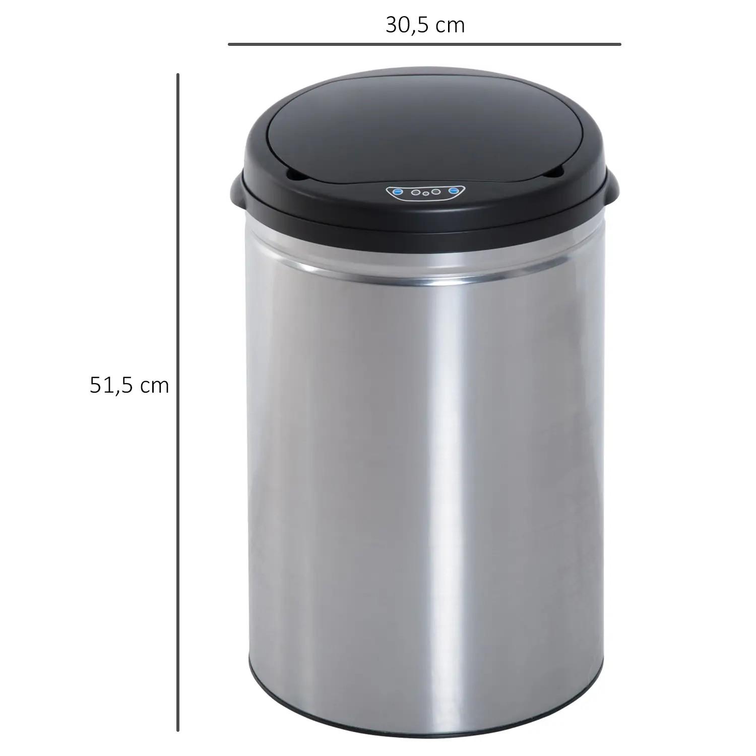 Contenedor Papelera Cubo Basura 30L con Sensor Detector Movimiento automático Acero Inoxidable
