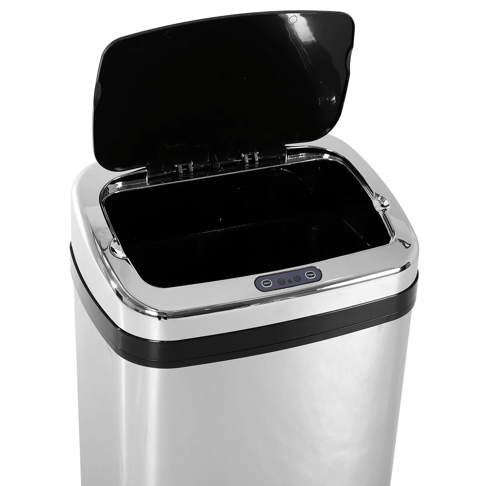 Papelera 30L Cubo de Basura con Sensor Detector de Movimiento Automático de Acero Inoxidable 33x25x58 cm Plata y Negro