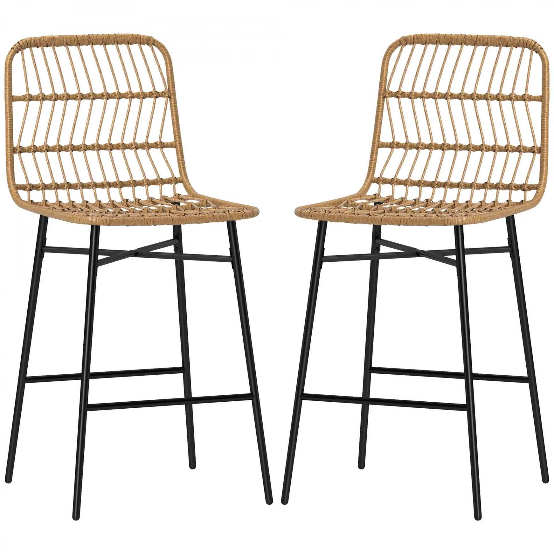 DISEÑO ELEGANTE: Añade un toque elegante a tu espacio con estos taburetes de bar, con asiento y respaldo de mimbre sintético que ofrecen un encanto natural. Su diseño garantiza resistencia y ventilación para mayor confort