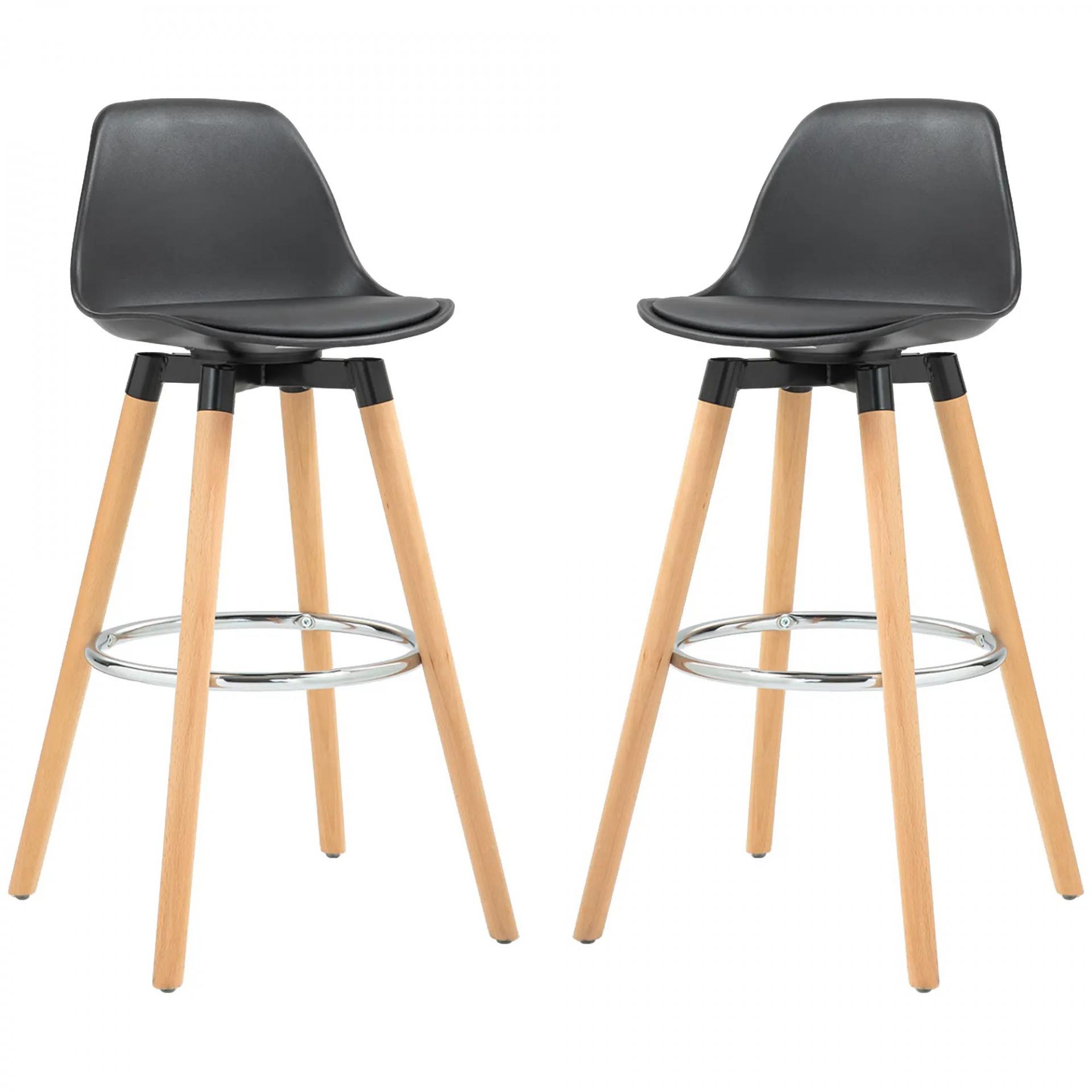 Juego de 2 Taburetes Altos de Cocina 69 cm Tapizado en PU con Respaldo Patas de Madera para Comedor Negro