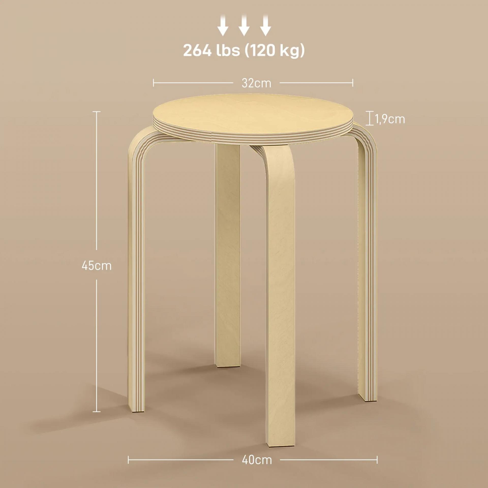 Juego de 4 Taburetes Apilables Taburetes de Madera Redondos Carga 120 kg para Cocina Salón Ø40x45 cm Madera Natural