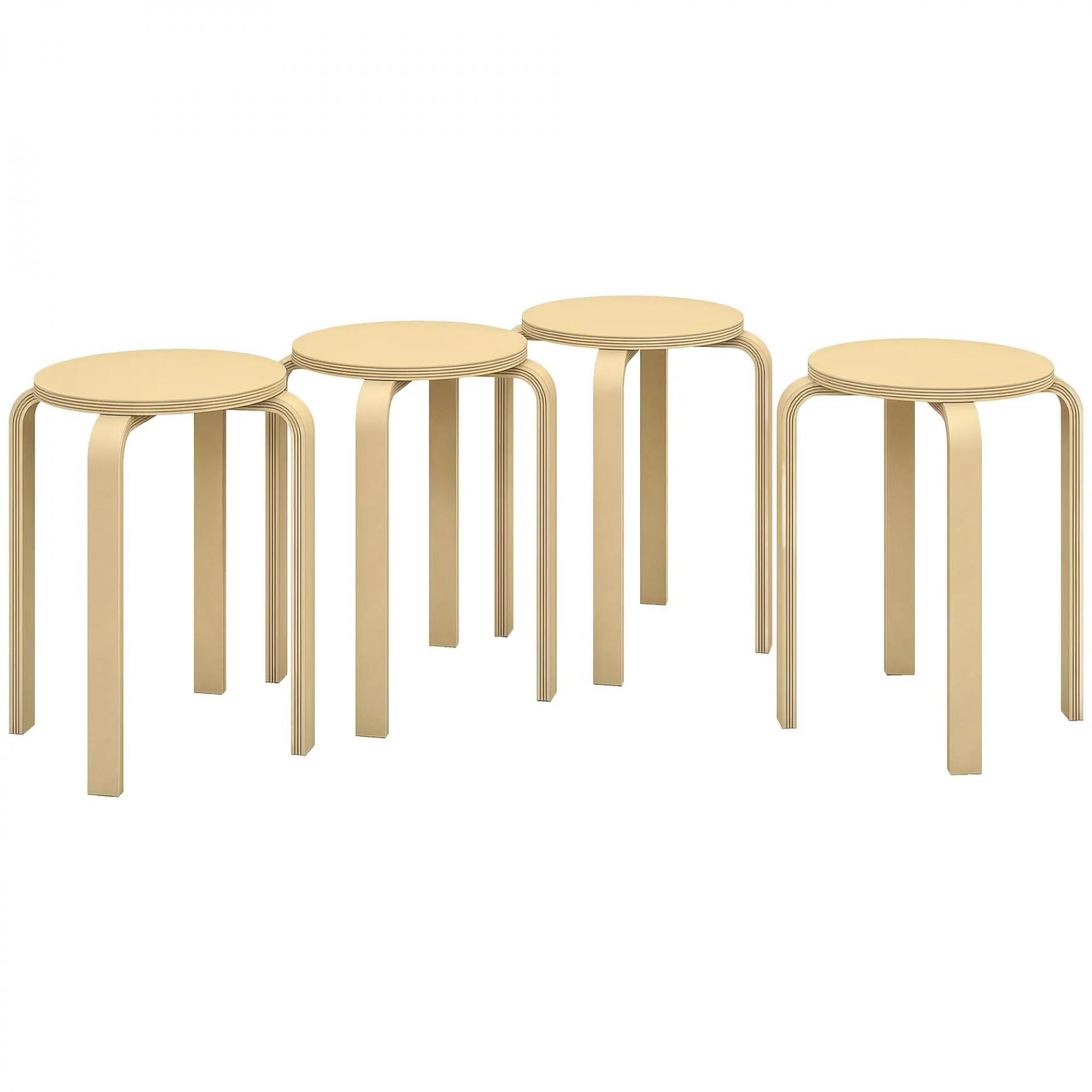 ESTILO MODERNO: Este conjunto de 4 taburetes apilables combina modernidad y elegancia, con un bonito acabado en madera. Son la elección perfecta para complementar cualquier habitación de tu hogar