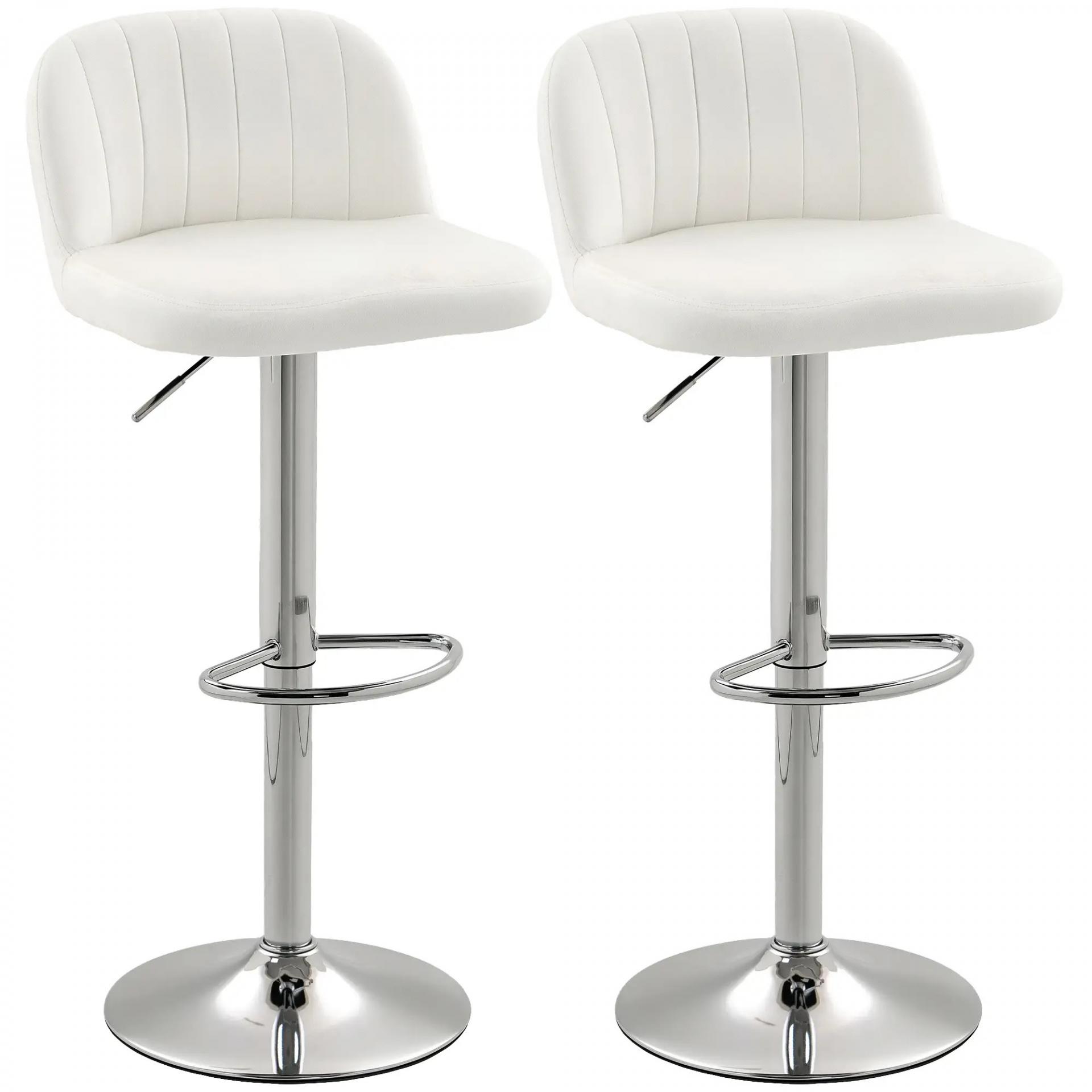 Juego de 2 Taburetes de Bar Taburetes Altos de Cocina con Altura Ajustable Asiento Giratorio 43x45x81-101 cm Crema