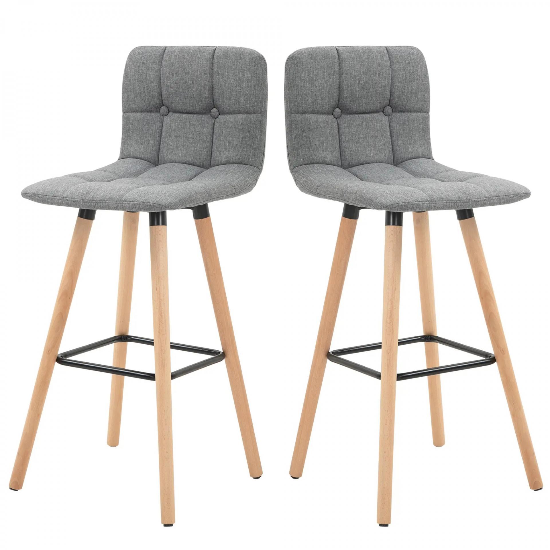 Juego de 2 Taburetes Altos de Cocina con Respaldo Reposapiés Patas de Madera Estilo Moderno Gris