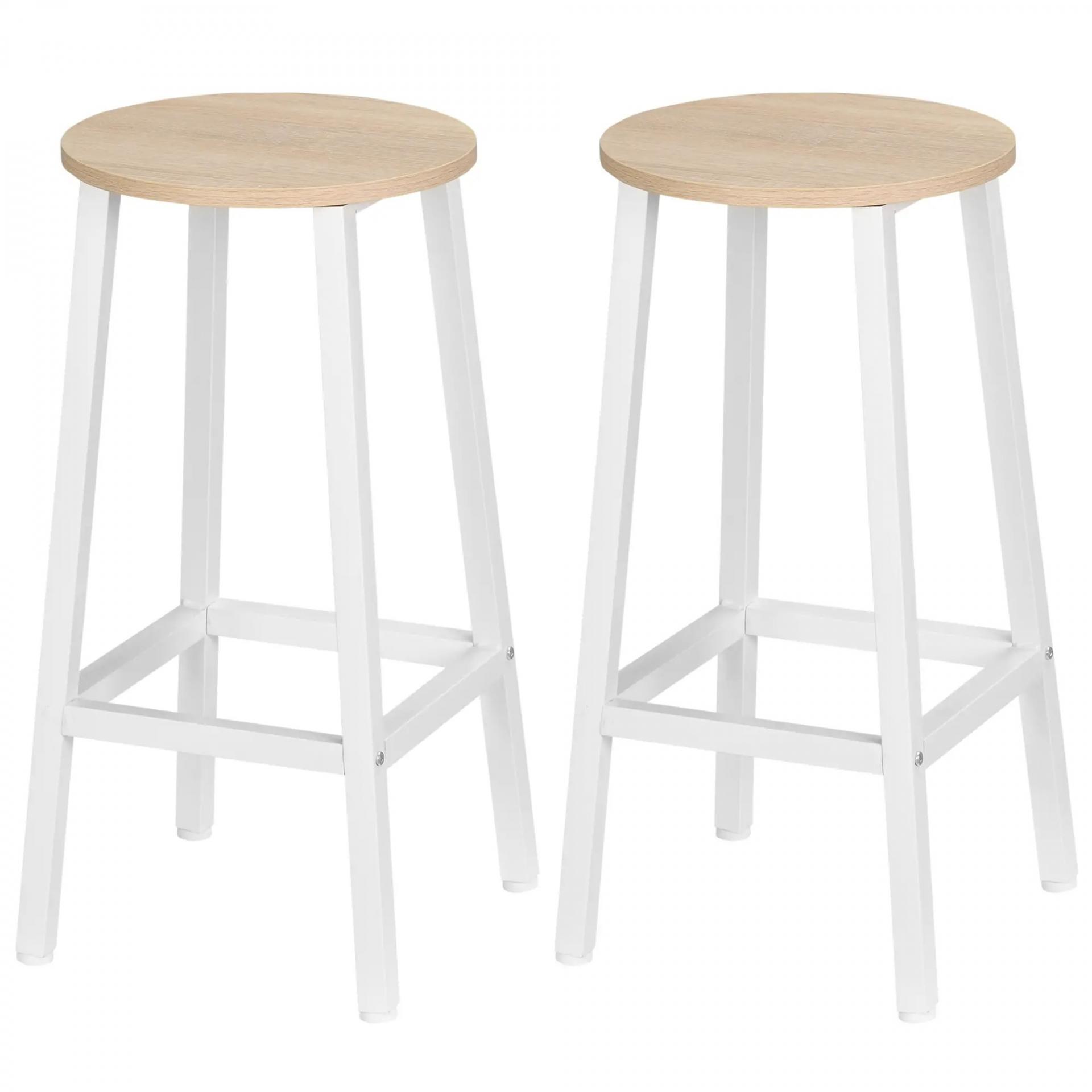 Juego de 2 Taburetes Altos de Cocina con Asiento de Melamina y Patas de Acero 32,5x32,5x65 cm Natural y Blanco