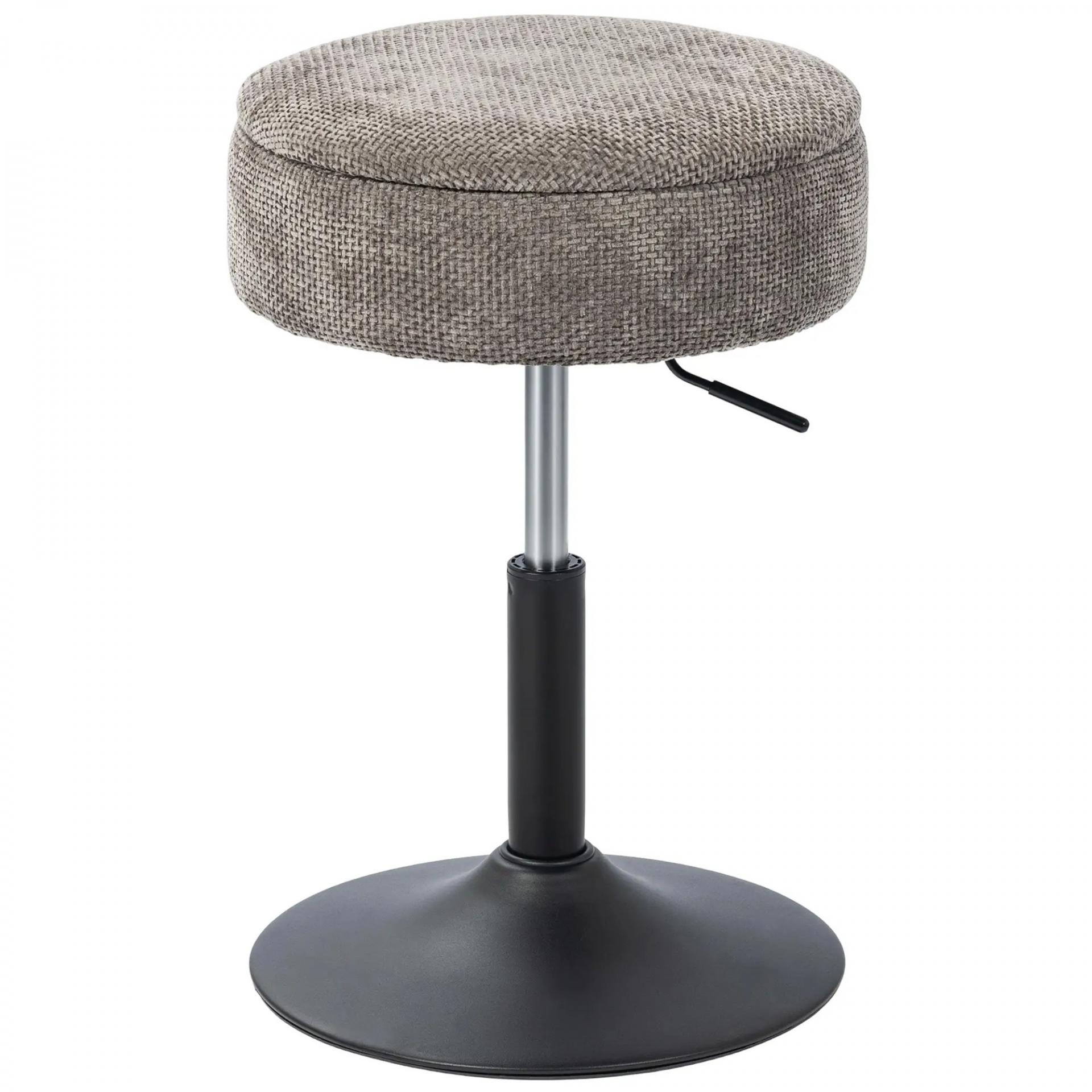 Taburete de Bar con Almacenaje Altura Ajustable Taburete de Cocina Redondo Giratorio Tapizado en Chenilla Gris
