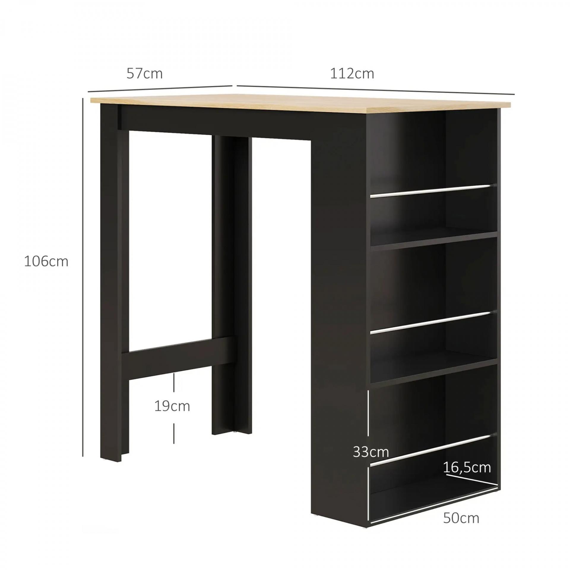 Mesa Alta de Bar Mesa de Cocina con 3 Estantes Marco de Madera Estilo Moderno 112x57x106 cm Negro y Natural
